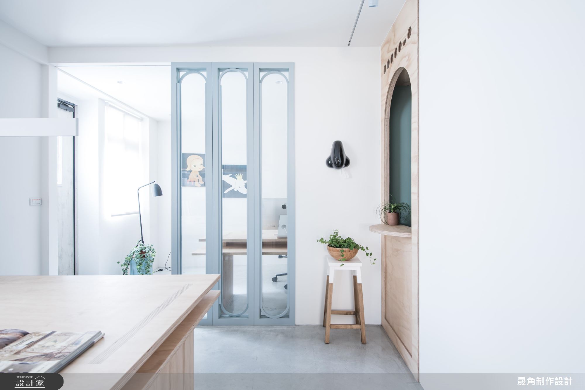 改變一般的設計方式,辦公室門口的落地窗設計,融合獨特的圓弧造型,讓室內空間也能成為令人印象深刻的風景。