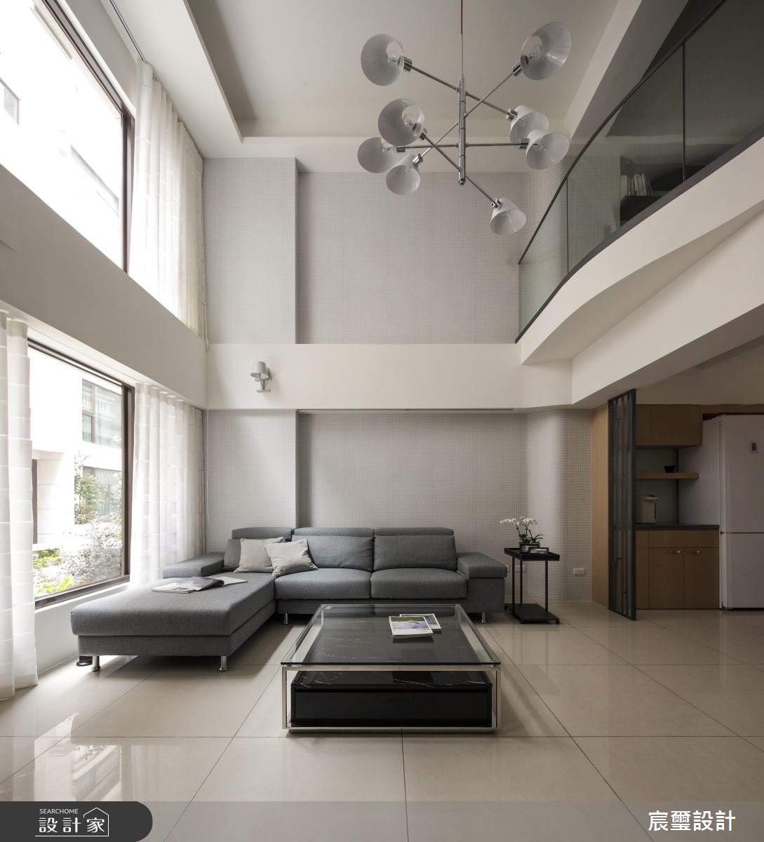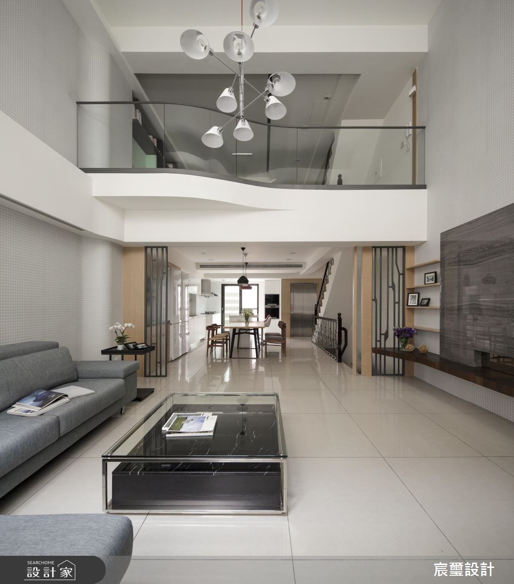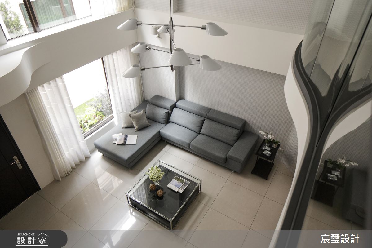 此案為透天別墅,以白色系為空間基底,簡約現代感的設計手法呈現家屋最自然樣貌,且延續挑高天花板的絕佳優勢,伴隨戶外自然光的灑落,營造出寬敞、開闊的氣度。