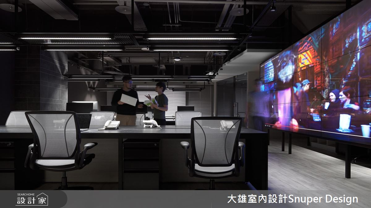 2米高的大型電視牆,可協助的工程師關注數據,在經過機密的計算後,考量承重及散熱,使用上下懸空的鐵件,輕量化視覺上的感受,同時讓空間氣流及感受均更為留通。