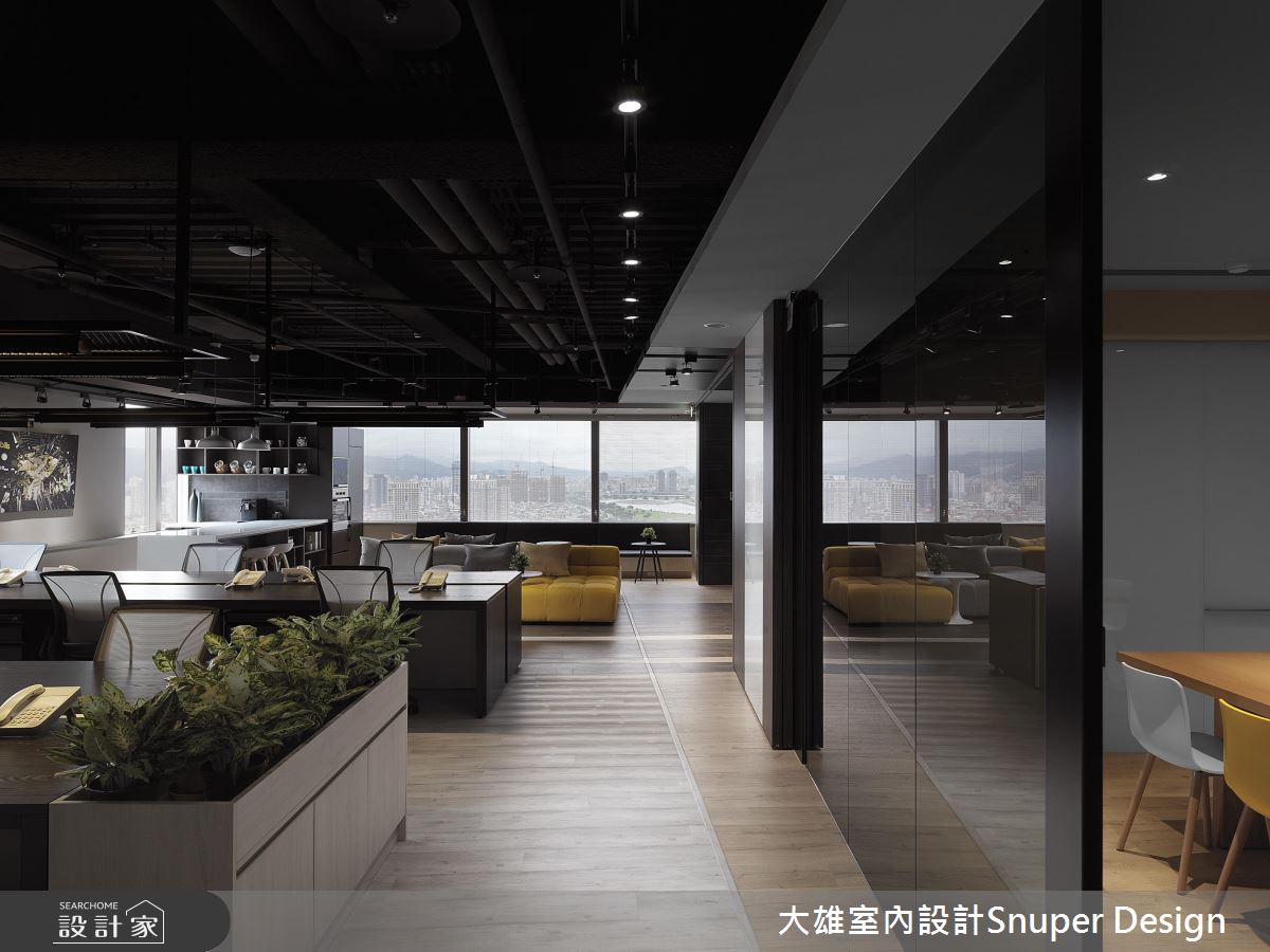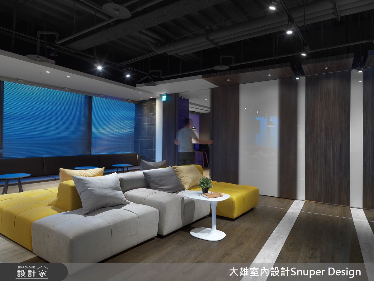 80坪的空間,分別切出了30人的工作區、15人的大會議室、6人小會議室、2米高電視牆、事務區、活動休憩空間與中島。透過彈性隔間,讓空間可恣意折疊,保有開闔自如的彈性,像是將白板門拉開後,再撤掉會議桌,便能排列出足以容納40人演講活的開放空間。而透空的擴張網取代牆的存在,視線開闊而延伸,在機能規劃上則採取複合式的靈活安排,辦公區的使用者只要簡單回身,便能與沙發區的休憩者互動,再轉個彎,咖啡香便纏繞鼻息。辦公桌上方則設置由上往下的燈具結合擴張網,可擺放綠意植栽或展示品,增添辦公室風景。