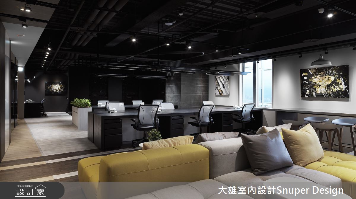 整體色調以灰色與黃色為主軸,桌板則大膽使用黑色調性,定調沉穩而安定的工作氛圍,留白的牆面,融合〈Tokyo Dream〉系列的攝影作品,將移動、沛然奔流的都會剪影,滯留於此,傳達著人們忙碌而充實,不斷切換生活和工作的景況。