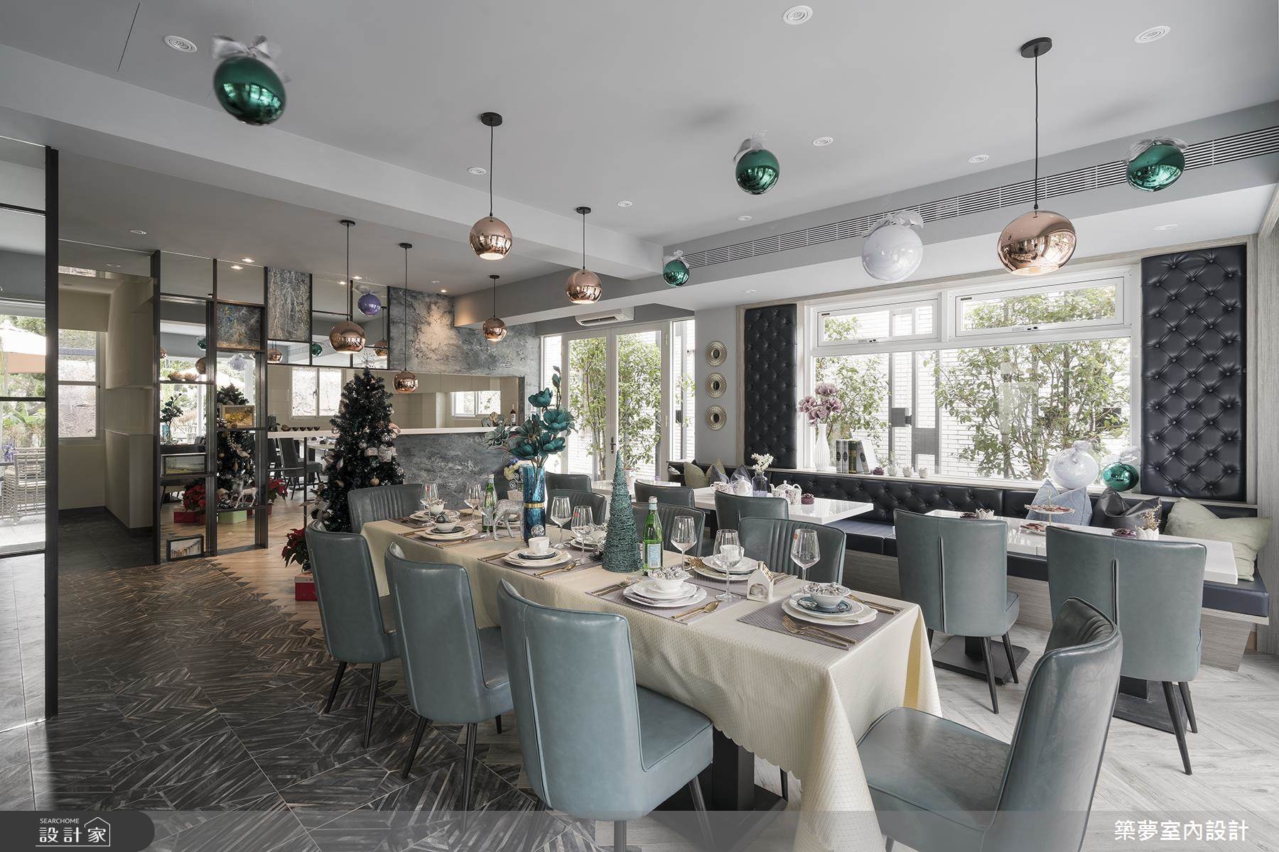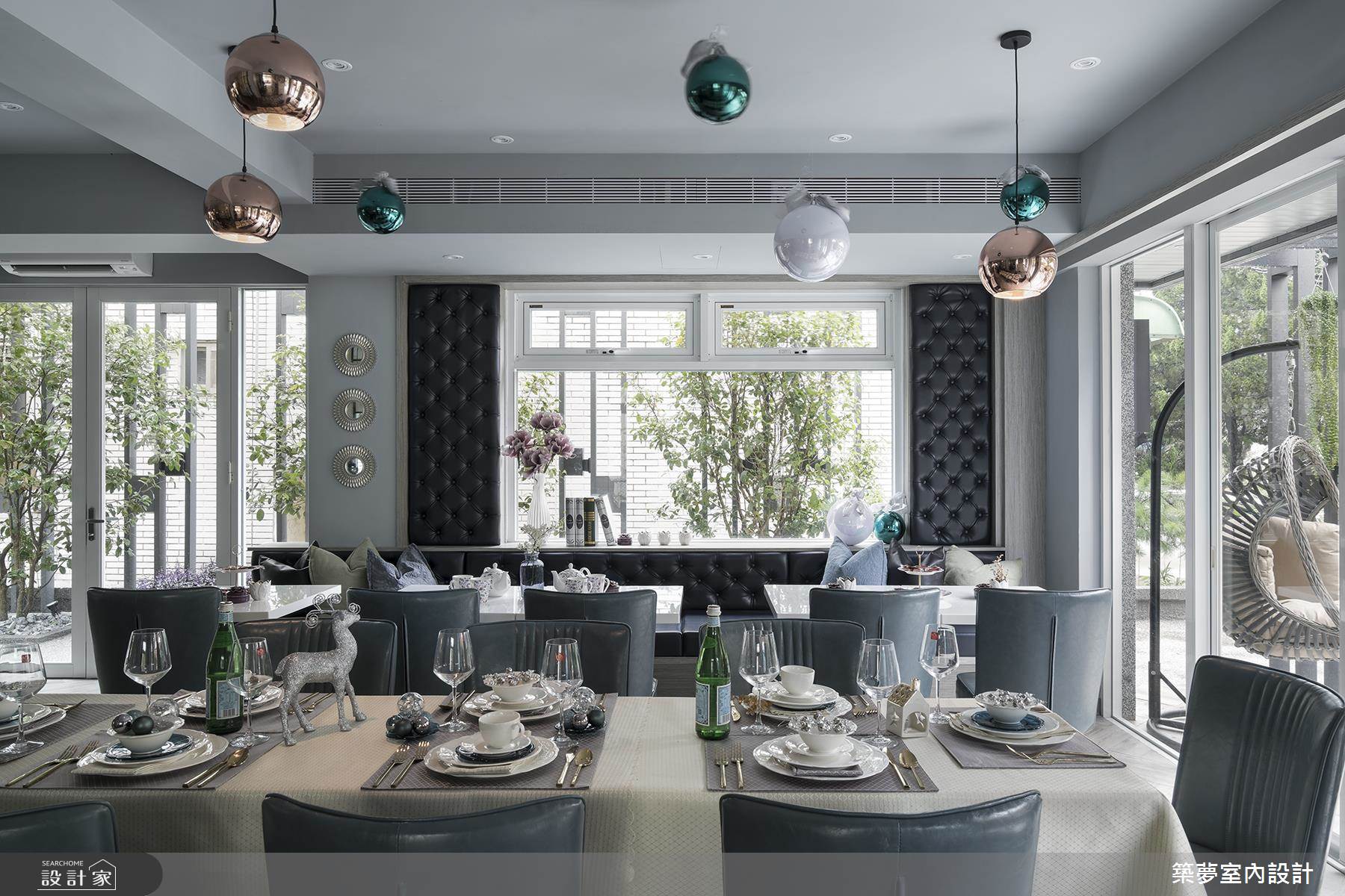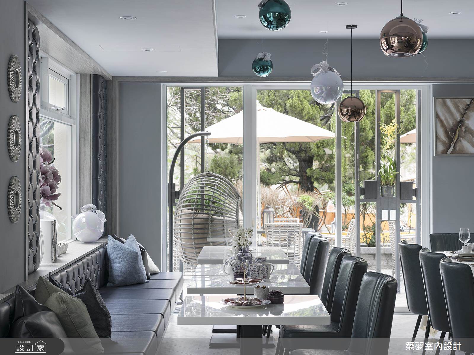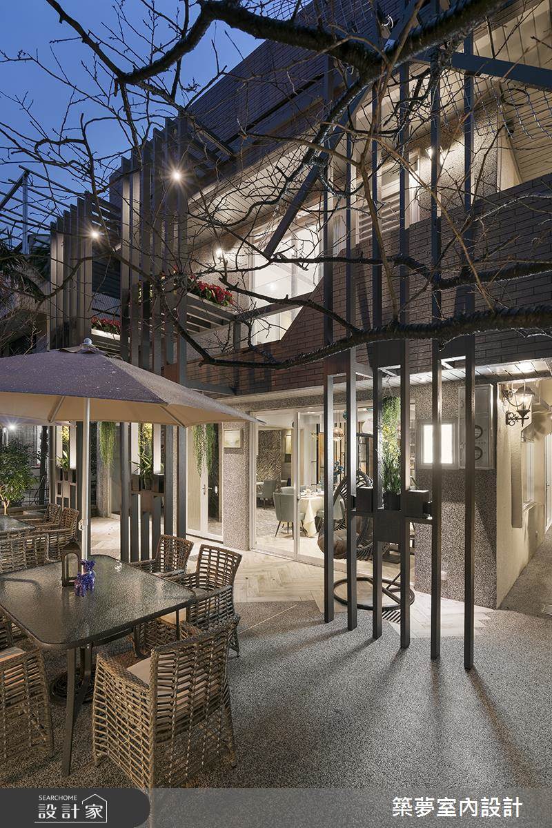 建築外觀搭構俐落的鐵件,並拉高兩層樓別墅立面,置入風車造型、花架等,搭配著前庭的露天咖啡座規劃,讓居宅瞬間變身成為迷你小歐洲!