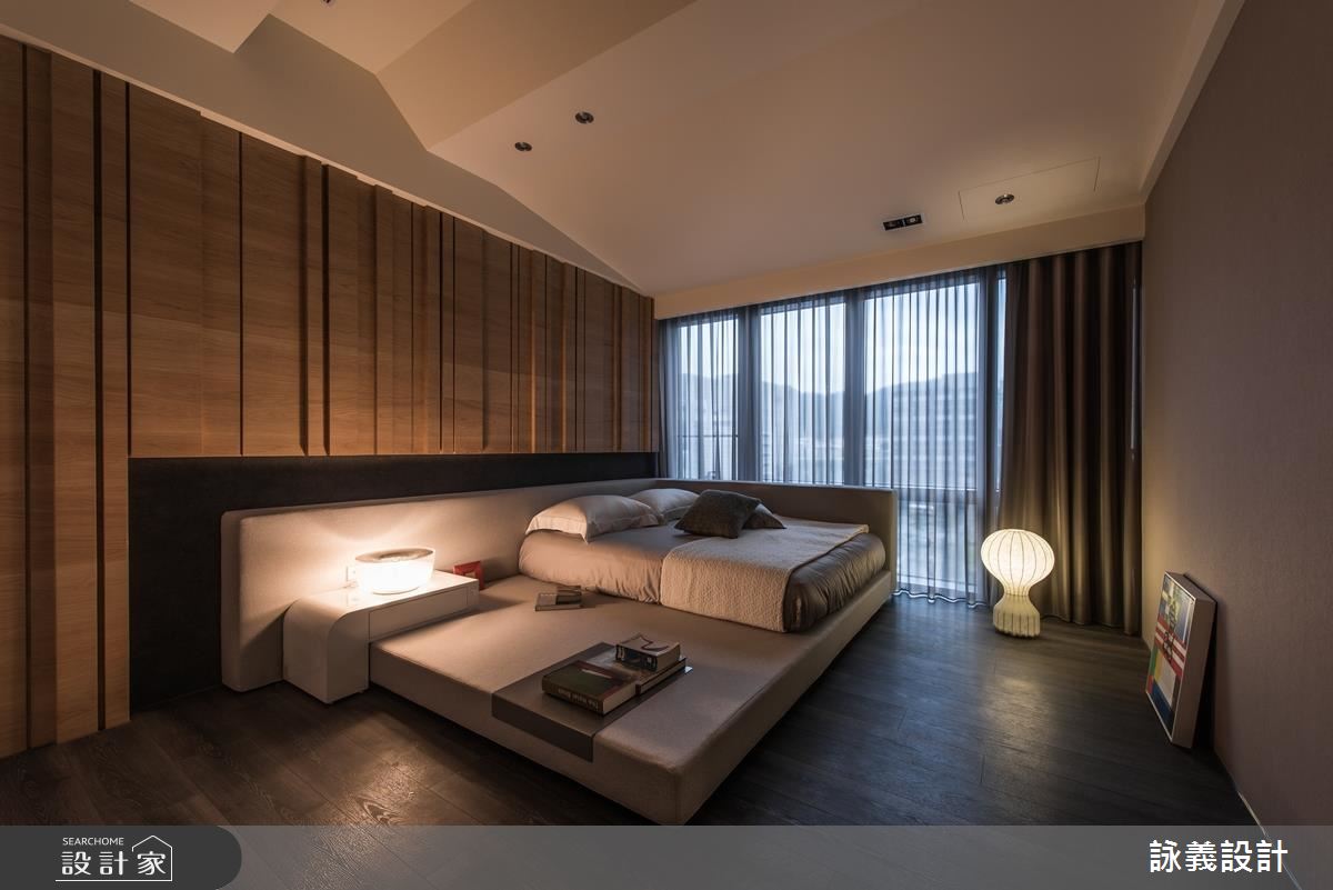 和室和臥房與公領域相反,並沒有過多色彩,取而代之的是沉靜的色調和天然的建材,搭配溫潤的人工照明,創造適切的舒眠場域。