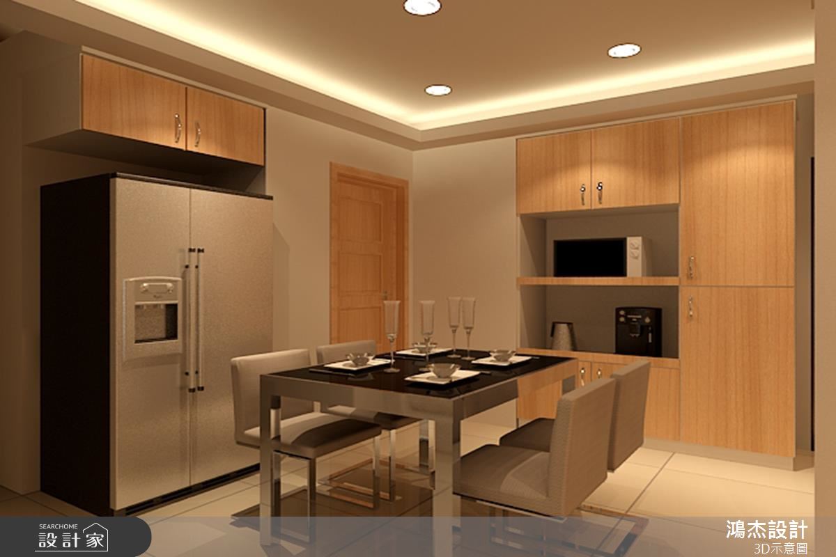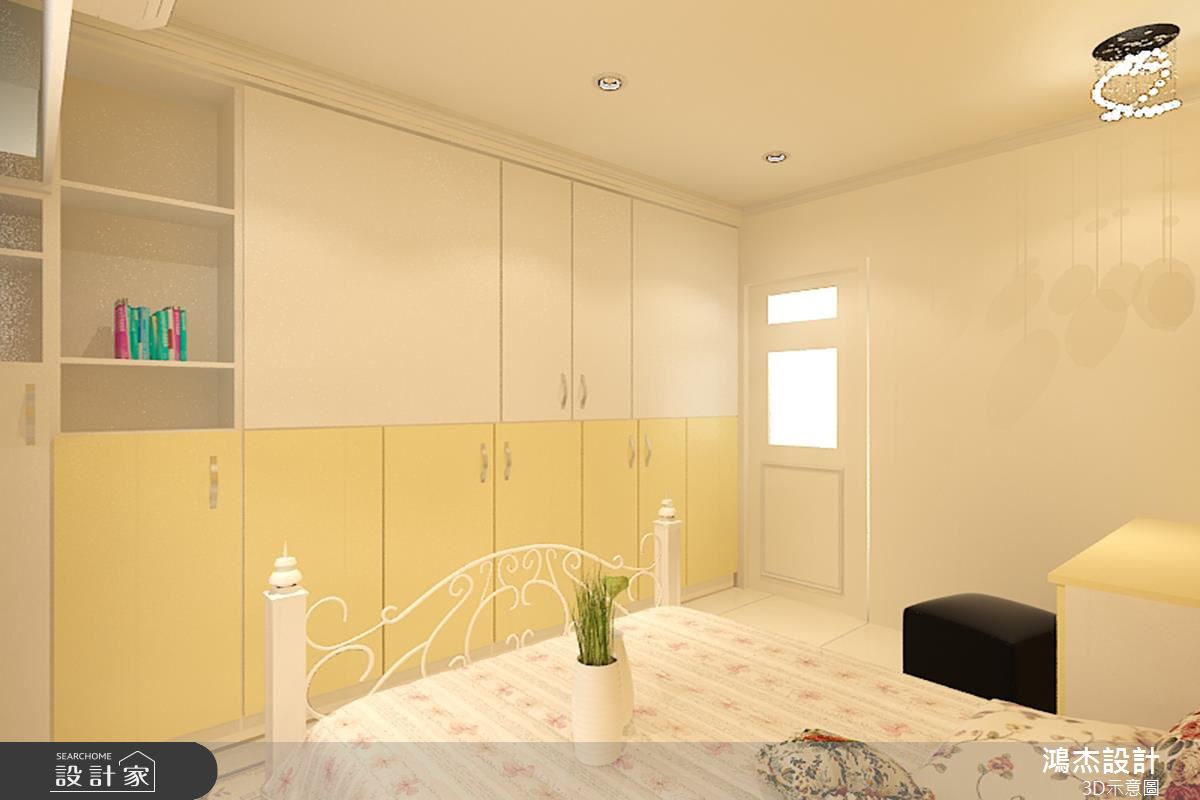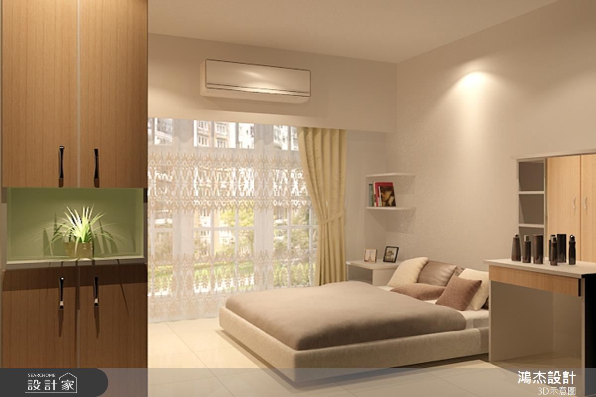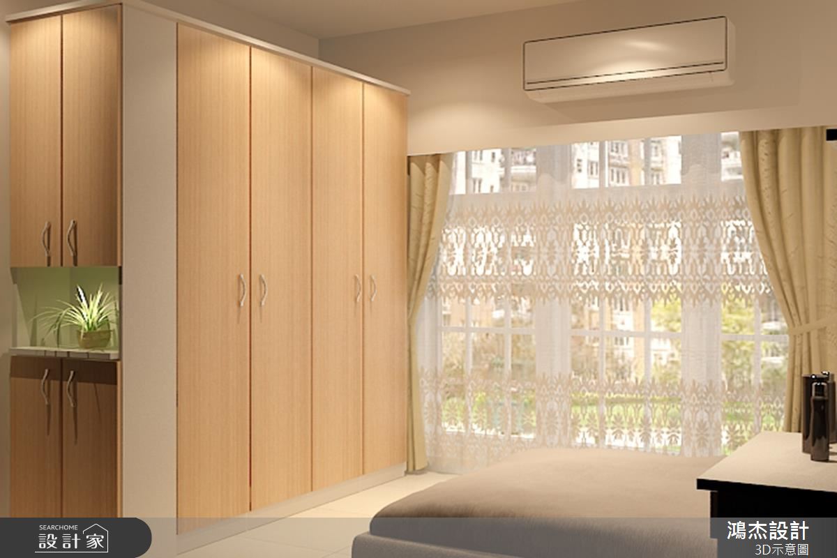 客廳區,讓電視牆結合高收納機能,透過系統櫃、清玻璃等規劃,塑造穿透且具延伸性的主牆表情,同時,讓整體呈現輕盈的色彩配置,令廳區更顯寬敞明亮,對外窗則刻意以白格子框窗結合蕾絲窗紗,將採光與風景導引入室,締造歐風莊園的美好想像;餐廳區亦承襲簡約基調,不設吊燈,改以間接光源包覆天花、帶入溫馨質感,並妥善安排櫃體與家具設備等,在兼具實用性之餘,落實俐落清爽的場域表情;臥室以內斂沉穩為基調,採用低矮床具保留無壓感,再搭配採光與景觀的無保留進駐,使房內流露出明亮度與呼吸感,並安置衣櫃、床頭櫃與牆角層架等等,將空間作出更有效的使用,激發房間可見的每一吋坪效!