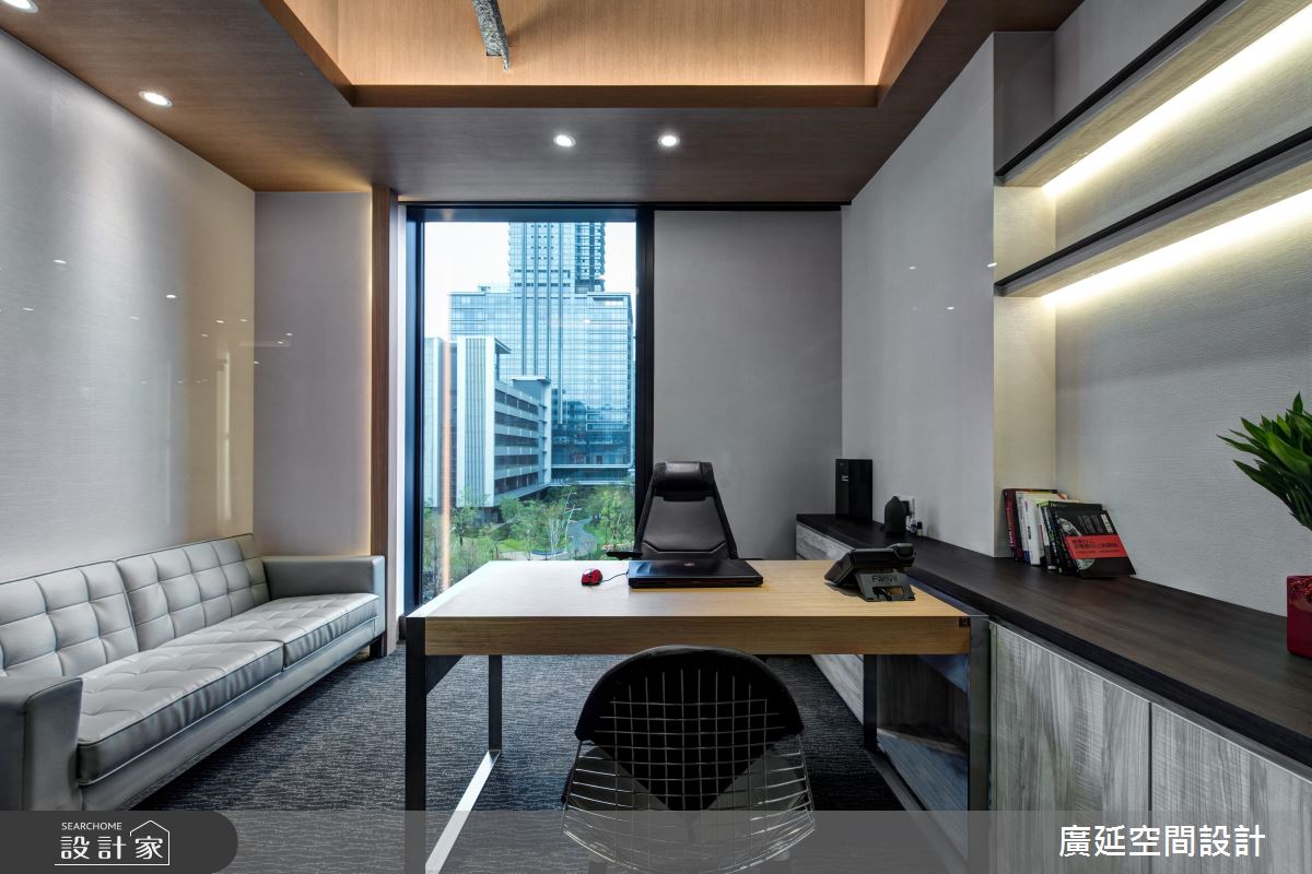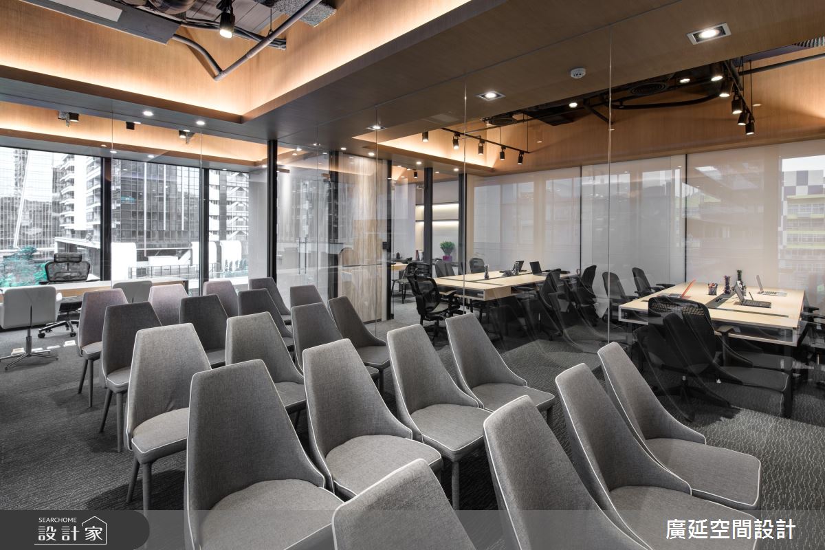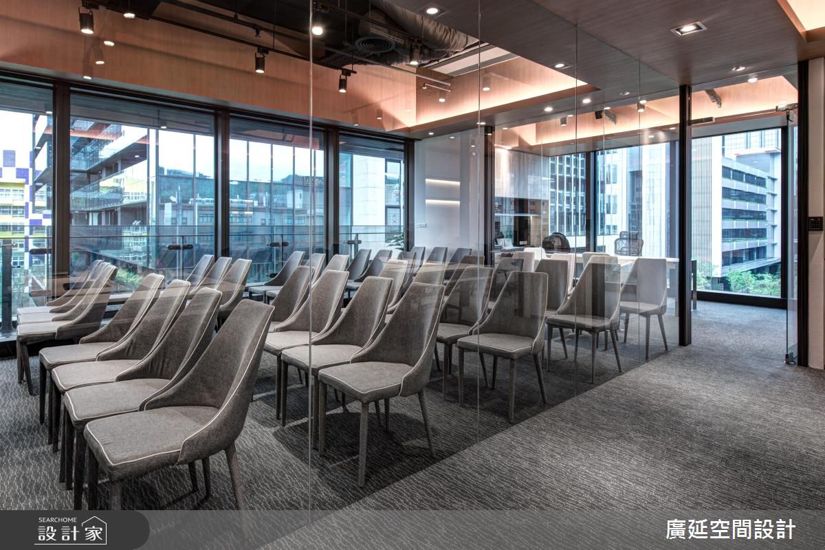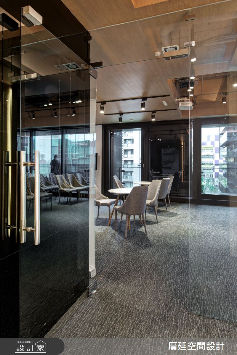 廣延空間設計為澳勝集團的台北辦事處進行空間規畫,善用新建大樓的 L 型採光面,為 40 坪空間帶來俐落、時尚的辦公氛圍。