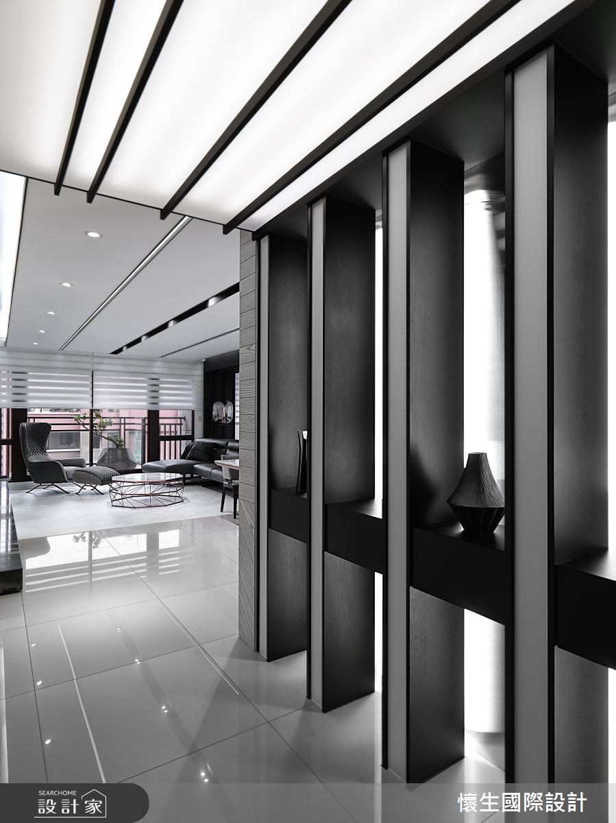 從時尚、工業設計到室內裝修,黑白色調與幾何線條終居經典不敗的地位,且看懷生設計如何運用這些元素佐以時下最時髦的金屬、大理石建材,打造極富前衛都會品味的訂製宅邸。以藝廊概念打造宛如展示廊道的玄關,以此定調了本案的藝術特質,進入公領域,設計師則是妥善運用大宅的採光與空間優勢,以全開放設計串連客廳、書房與