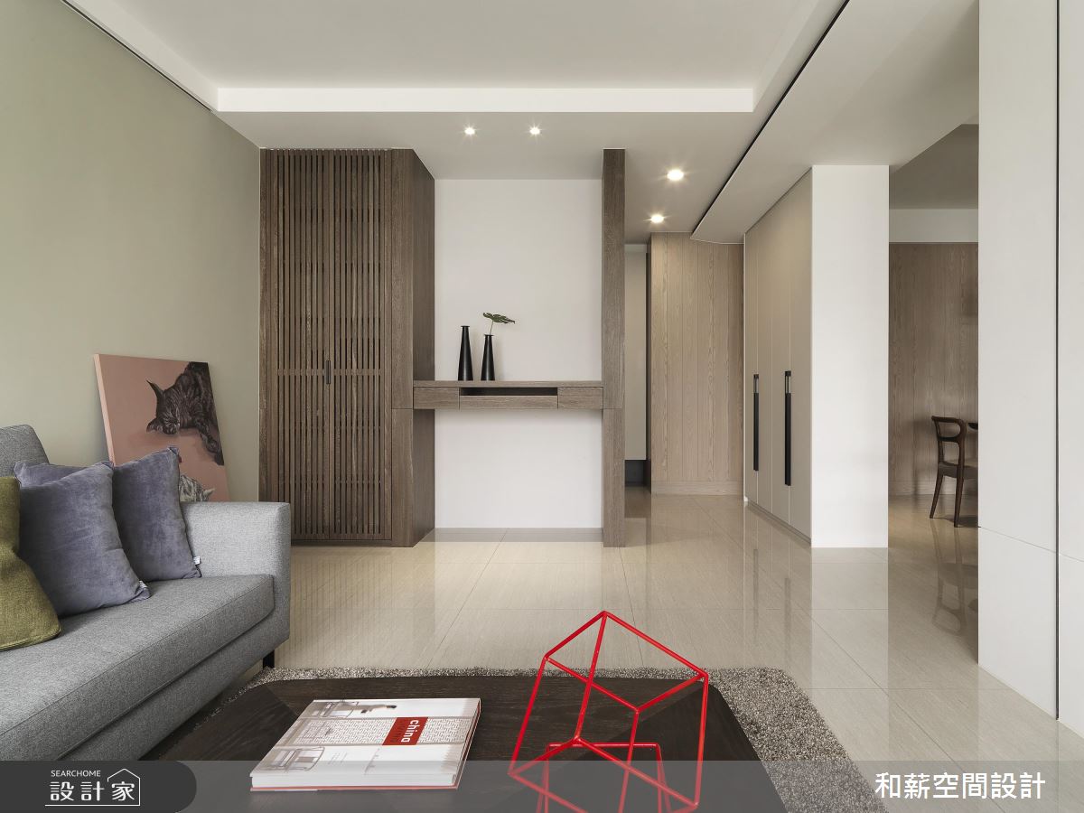34 坪現代風居家,設計師考量到家庭成員使用需求,將原格局 4 房變更為 3 房 2 廳,在將一間客房取消後,使得玄關、餐廳、客廳等公共空間都更顯寬敞舒適,打造出小家庭的美好生活,快跟著小編一起來看看吧!