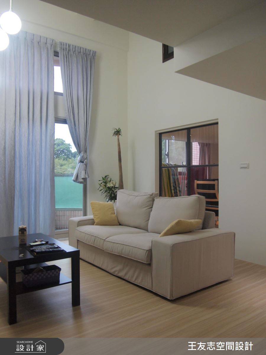 將空間裡的線條、顏色淡化,反而創造出大一倍的空間感受,加上建築原有的挑高格局,讓小宅空間立即放大。