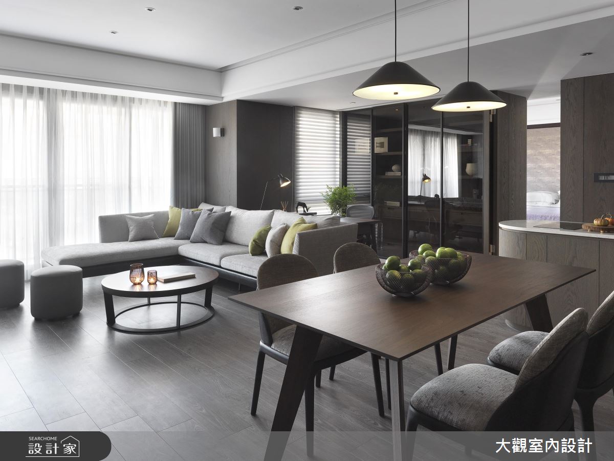 34 坪的現代風住宅,屋主喜歡像是高級旅店般的高雅舒適質感,並期待擁有多功能的寬敞大客廳,一次可以納入客、餐廳、工作區和輕食吧檯等 4 種機能性,設計師也以自然色調、材質,加上俐落現代的線條,打造兼具美感與機能性的舒適現代宅。