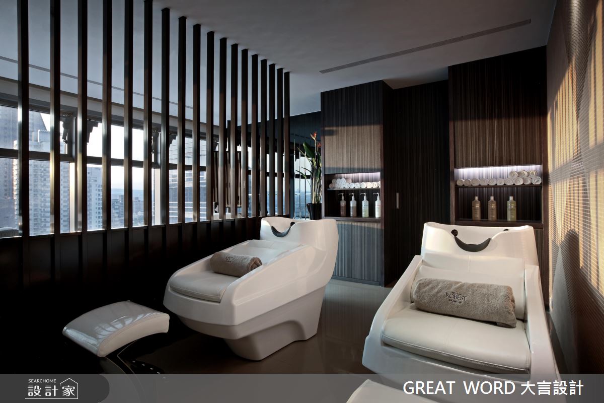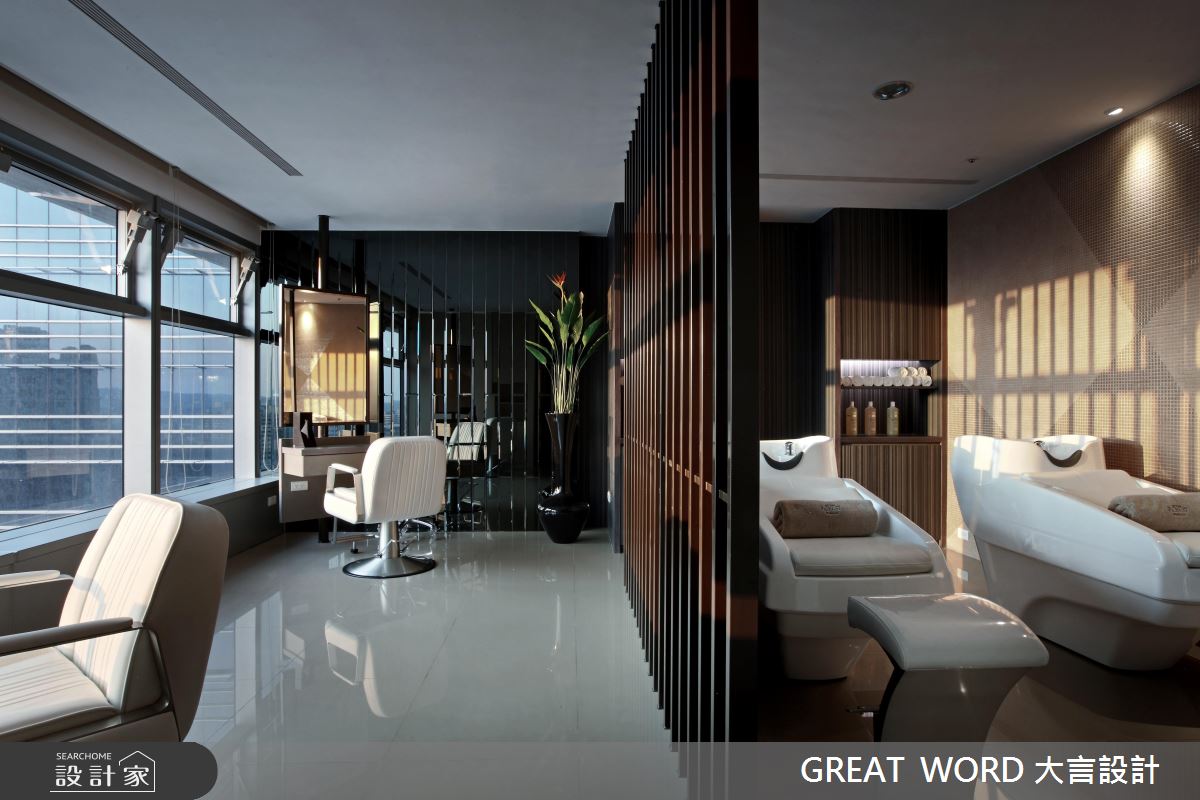 來到美髮區內,則可見金屬格柵的分佈,在垂直線性中帶入闊朗靜雅的意韻,於縫隙之中轉化虛實視線並篩落光影,讓空間確切符合使用題旨,充滿著紓壓與放鬆感!