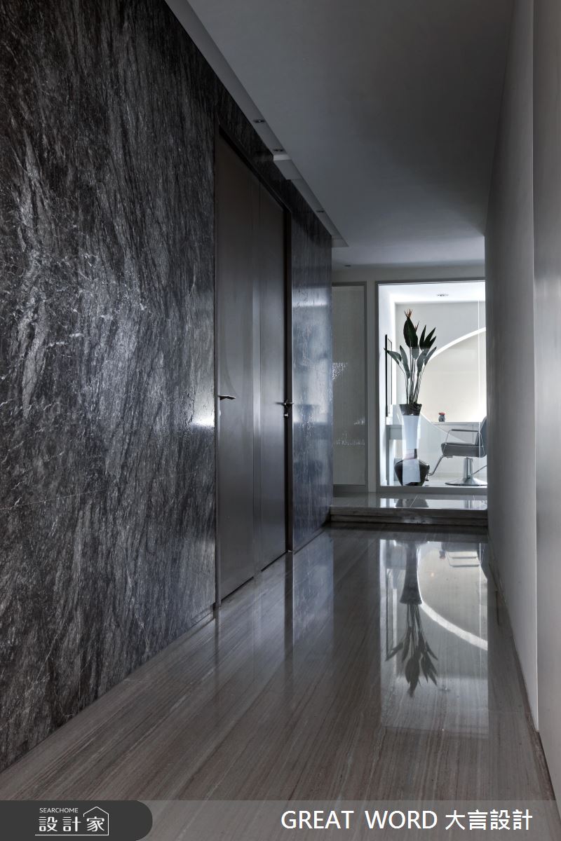 在色彩與材料使用上,透過中性色調作為主題,展現灰色的清爽俐落,並引用金屬方管、金屬馬賽克、石材等建材搭配曲線延伸,開啟虛實、反差的抽象變化,在光影與色調的對比之中,型塑各個空間場域不同的細節詮釋;大廳設計低調簡約的圓弧流線似髮絲意象帶入,導引健髮中心以養護頭皮清爽潔淨為宗旨,並運用導引視覺將顧客領至廊道、療程區等其他場域,串聯出流暢而純粹空間體驗;在休憩區,擷取了原建物的斜撐鋼樑,新增大小粗細不等的金屬鋼管,巧妙的轉化成界定場域的格柵,大器且獨特,形成醒目聚焦的空間標的!