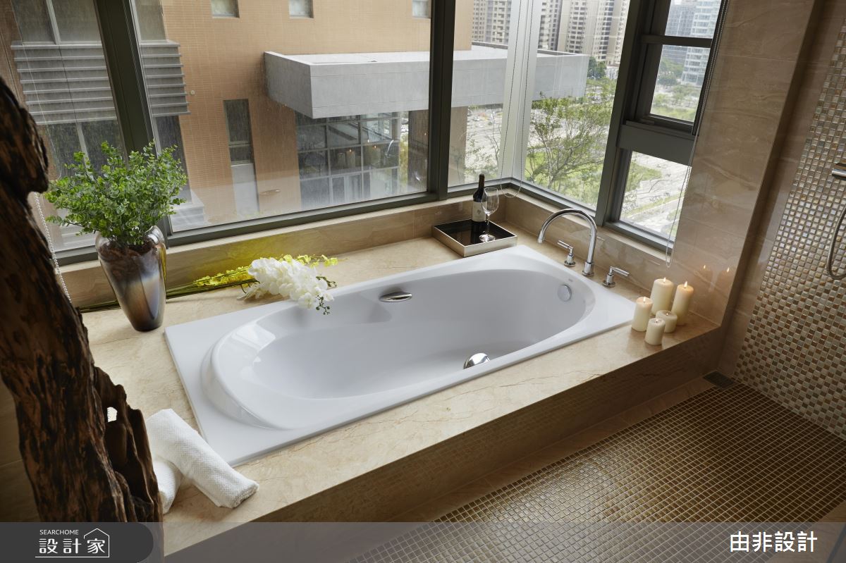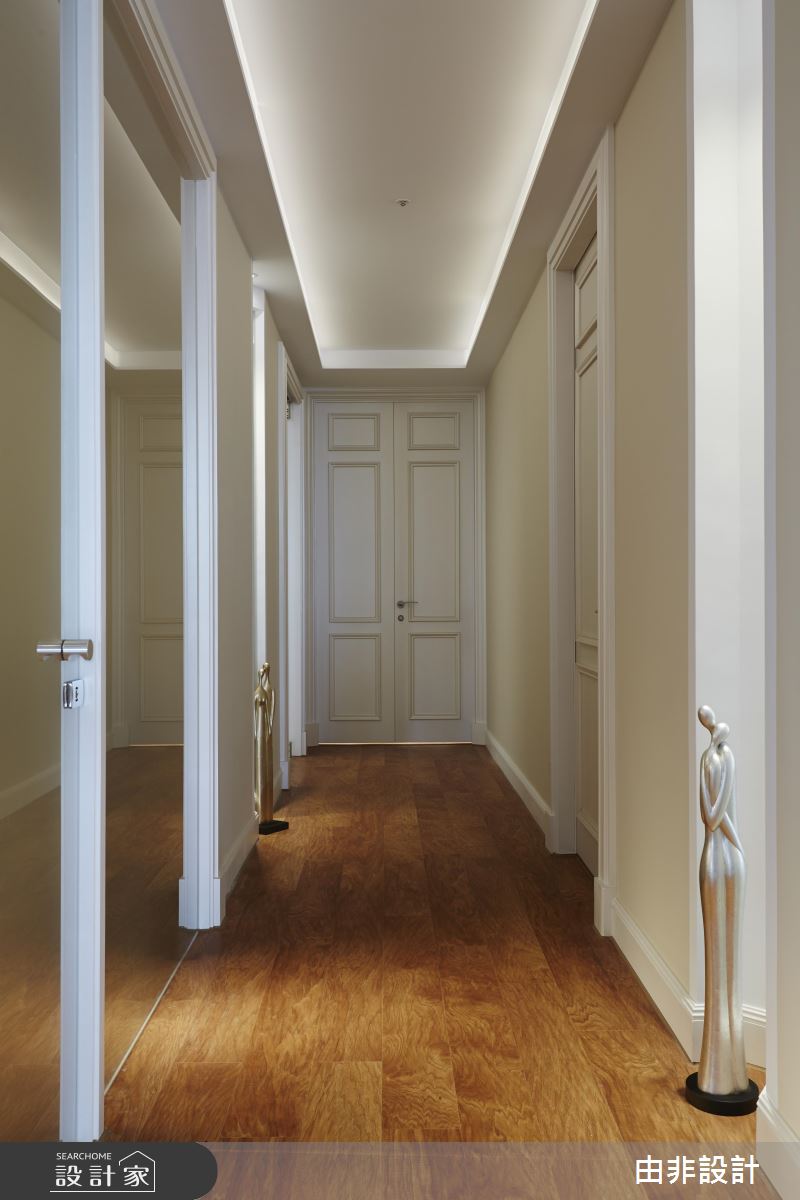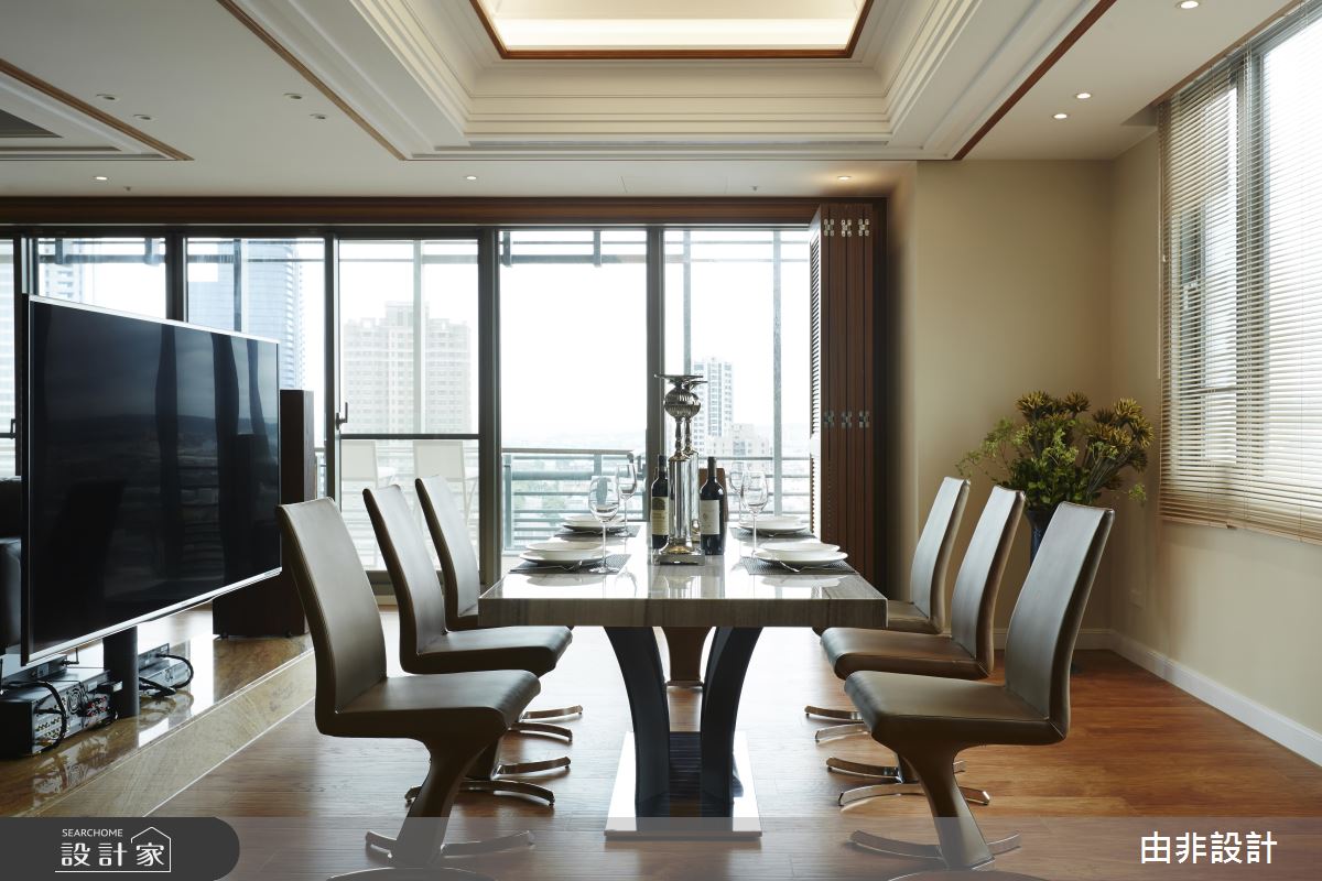 首先,設計師改進玄關的不完整與樑位干擾,以兩側更衣間及鞋櫃加以包覆,達到銜接小書房與臥榻區的作用,形成「一進再一進」的空間序列;且將廚房分隔成熱炒區與輕食區,藉由輕食區的大吧檯配置,與客餐廳產生關係,讓公共空間的使用可更為活化;客用衛浴則因原始為暗房,且動線不佳,運用隔間接引光線,並重新調整配置,在入口處配置公共性較強的面盆空間,增添生活便利性,另外,更創造出「客用」衛浴的玄關領域,並將其入口轉向,加強私密性;主臥因缺乏玄關,無法凸顯其重要性,於是併入原有外部走道,作為主臥玄關,衛浴則整合淋浴與浴缸,做到確實的乾濕分離!
