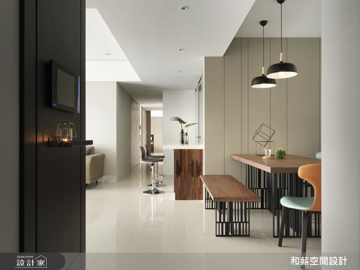 設計師透過精細的佈局,從入口開始,完善區劃了客廳區、餐廳區以及步入私領域的廊道動線,在明確的生活主題之中,保有敞亮不擁擠的居家輪廓!