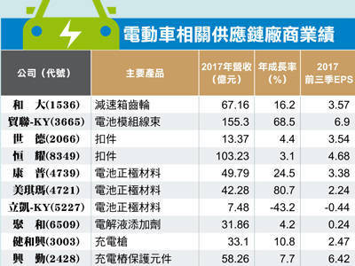 隨著Model 3量產逐漸步入軌道,對於國內Tesla相關供應鏈廠商如電池模組線束貿聯-KY、電池正極材料康普與美琪瑪、充電槍康舒與健和興、觸控面板群創與TPK-KY、保護元件興勤、電源零組件台達電、電池模組電流控制板高技、檢測設備致茂與馬達廠富田電機、揚聲器鍛件錩新、車用鏡頭亞光、散熱模組建準、電動車電池高壓連接器崧騰、防水連接線宣德、被動元件電感美磊、馬達電磁鋼片中鋼、傳動軸江申、導線架順德與扣件恒耀與金屬沖壓華孚等可望受惠。