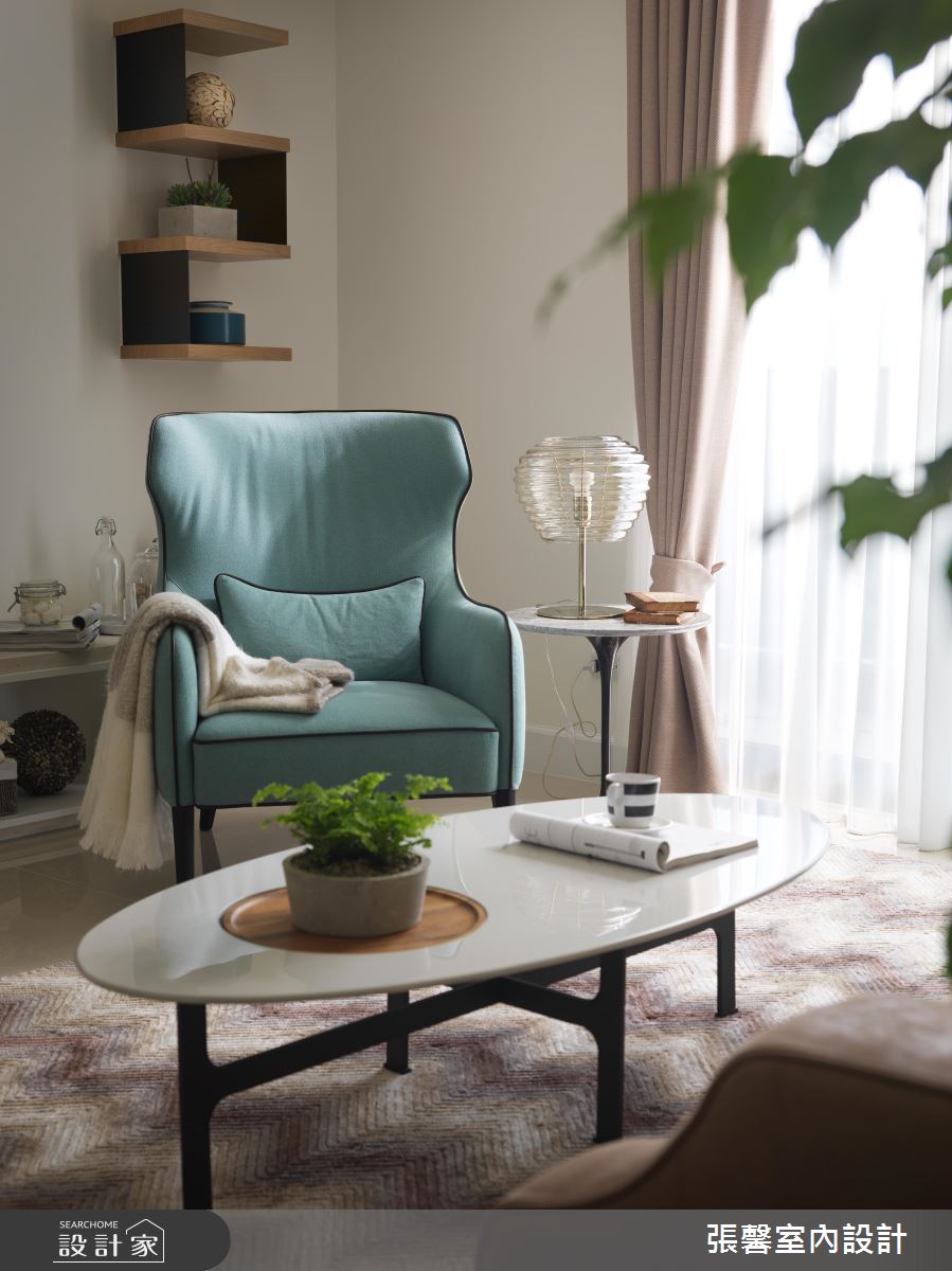 簡潔的空間基底下,美式線板僅描繪於玄關、廊道的櫃體,佐入經典風範;客廳裡利用湛藍色系的抱枕、湖水綠單椅增添藝術光采,壁面再透過層板搭建展示區、綠意植栽的擺設,以及玻璃桌燈等風格物件的陳列,豐盈層次感的美學生活,令人心生嚮往;餐廳領域則融入鄉村風元素,挹注恬靜、溫馨的氛圍,加上備餐櫃上的風格擺設,天花板的巨型金屬吊燈裝飾,皆讓用餐時光倍感暖心;此外,收納機能也是空間的一大重點,利用雙面櫃形塑走廊的轉折動線,同時將大量的櫃體集中在廊道兩側,讓公私領域更充分運用,而簡約的櫃體設計與展示美學,更營造出實用且賞心悅目的端景造型;臥室裡的壁燈、手扶梯設計更延續校園經典的設計,喚醒屋主夫妻倆在大學相識的點滴回憶。