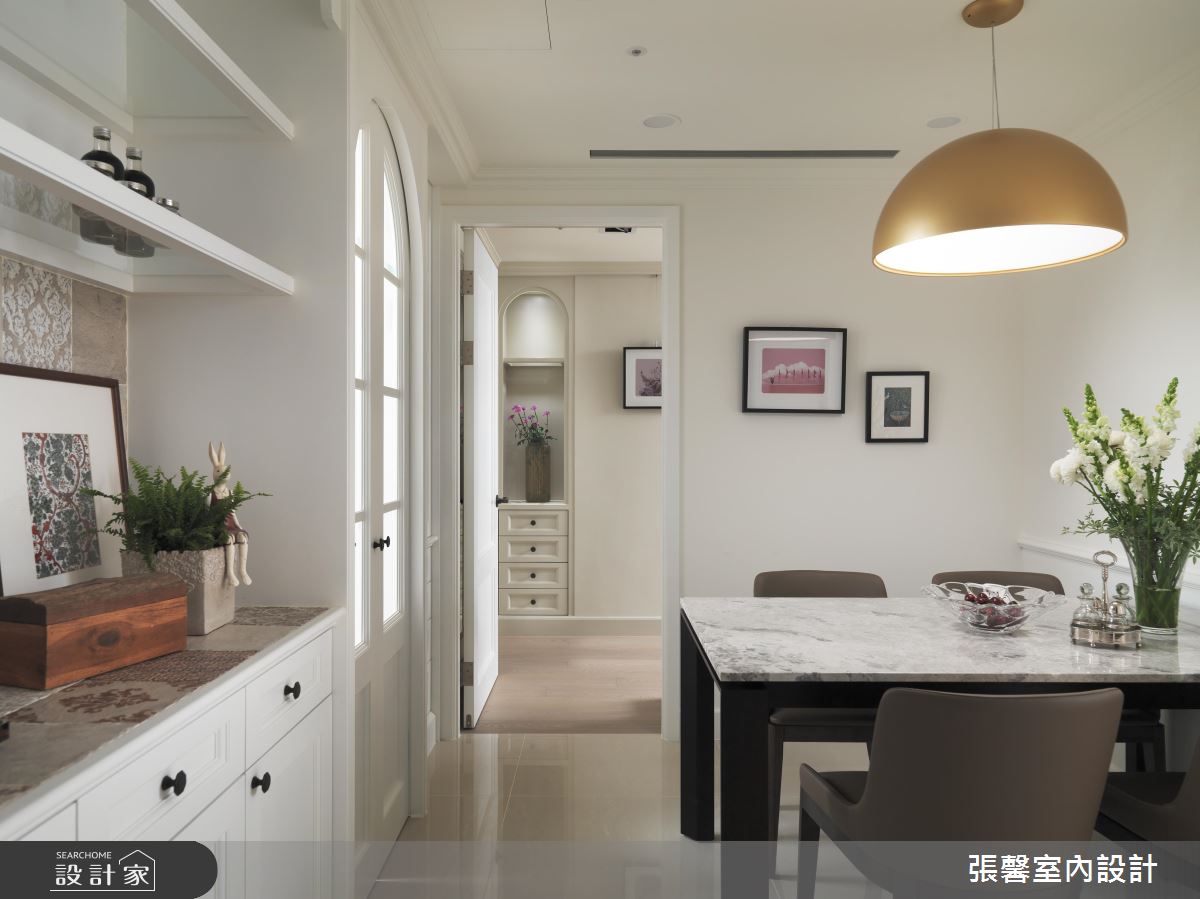 大量純白的空間基底,成為設計師盡情施展風格的畫布,隨著戶外暖陽引入室內,提升整體視覺明亮度,且讓局部的色彩更顯飽和,並烘托材質的質感與線條,交織出一幅幅優雅的美式情境。
