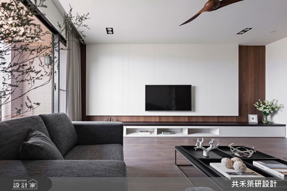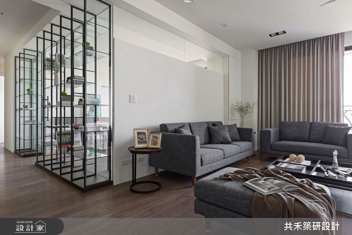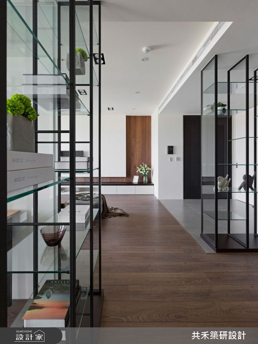 玄關以灰色調舖陳地坪,與原木質感飾底的公領域界定開來,前方藉由玻璃開放櫃的擺設,讓餐桌與玄關有所劃分,避免開門見灶的風水疑慮,同時強化收納需求。公領域全面沉浸在陽光的洗禮,電視牆以白、木紋色塊堆疊出漸層美感,沙發與單椅覆以灰色系布料,加上金屬線條勾勒的茶几,植入低調的人文美學;明亮的戶外光線從書房窗戶引入,無刻意打造隔間牆做為公領域之分水嶺,僅以開放的玻璃層架圍塑領域,餐廳與廚房之間也以玻璃門片打造,穿透質材的安排,讓光線深度走進餐廚區,享用佳餚與烹調的領域充滿明亮、乾淨的自然氣息,深色原木的餐桌椅替現代私宅挹注一份溫暖,同時傳遞家的動人溫度。