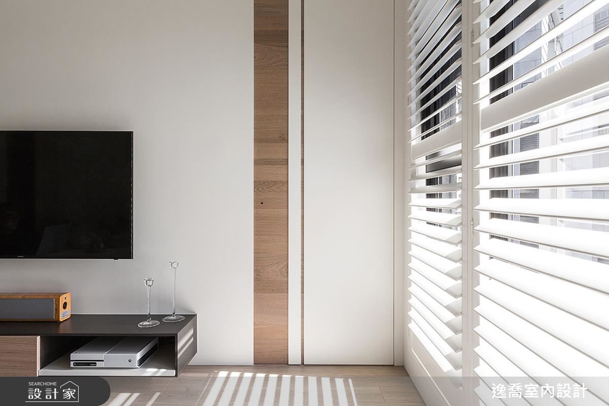 22 坪簡約風居家,屋主為年輕的新婚夫妻,喜愛簡約現代的風格,並有大量的收納需求,設計師運用長型屋的深度,加入長向的線條,以及臥室格局調整,為屋主夫妻打造夢想居所。