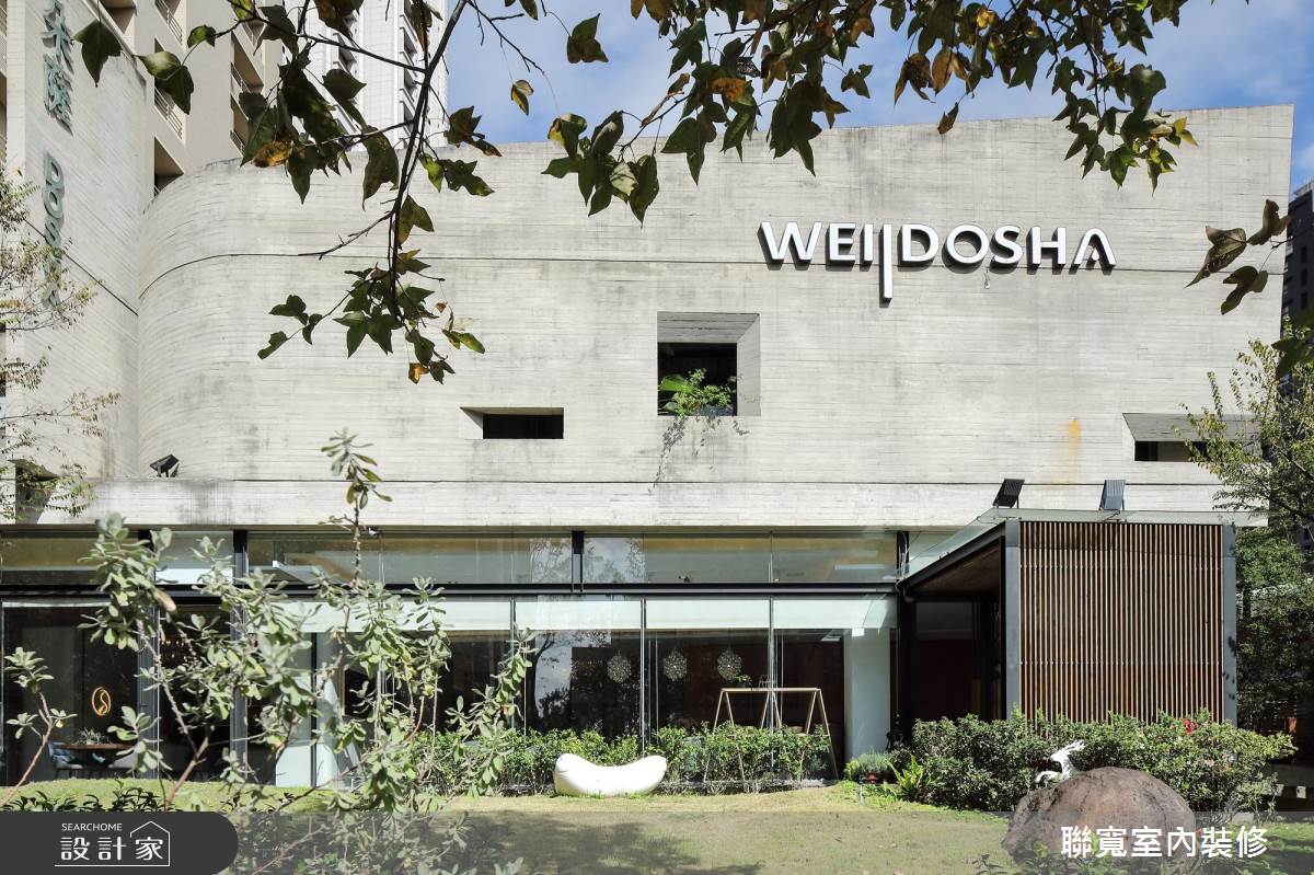 綠意景觀環抱清水模打造的建築體,傳遞療癒的休閒風尚,替都會裡的人們打造一處安定的淨土。推開玻璃大門來到室內,無繁複的裝修技法,白色的天花板串連整個領域,局部以階梯式安排,美化大樑結構,藉由視覺高低差的感受,塑造出軒昂大器;周圍擁有大面採光,引入戶外綠意,室內以簡約、明亮的元素作為風格調性,內外景緻相互呼應且延伸,讓設計回歸純粹性,而空間裡的植栽牆、華麗感吊燈、結構感的展示層架從背景中脫穎而出,演繹雅緻的生活品味;中央擺設一張大型的原木長桌,成為各式各樣花藝的展演處;後方的餐廚區以大量的木紋飾底,增添溫馨情誼,天花板與壁面則利用細長條的金屬質材描繪,提升視覺明亮度,挹注時尚風采。