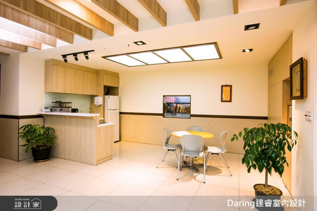 門口處,設計師創造出令人矚目的入口印象,透過一面展示牆羅列器材零件,且融入木皮肌理與燈光修飾,中央則加入醒目的LOGO字樣,型構大器溫雅的接待場景;辦公室內部,則採以一致性的色彩調配,選用淺色木皮作為主建材,搭佐柔和的燈光設計,營造明亮舒適的氛圍,空間內處處可見日式經典元素,像是在天花加入木作條、於櫃面鋪敘暖質木皮等,以細膩線條及語彙串起空間關係,並保有現代感的員工辦公桌椅,將專業感與素雅禪韻完美銜接;茶水區,更可見壁面作出細緻的壁材處理,搭配日式感家飾、字畫等擺設妝點,創造商辦空間的溫煦氣氛!
