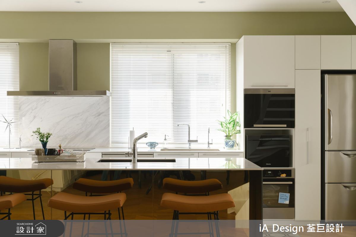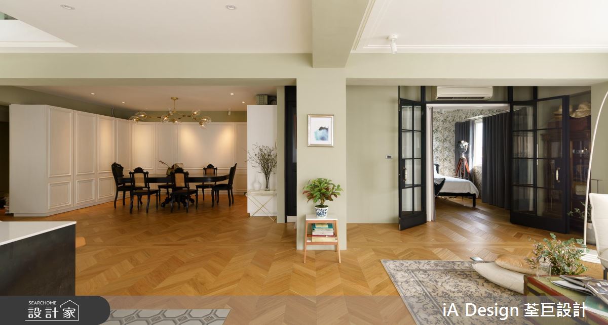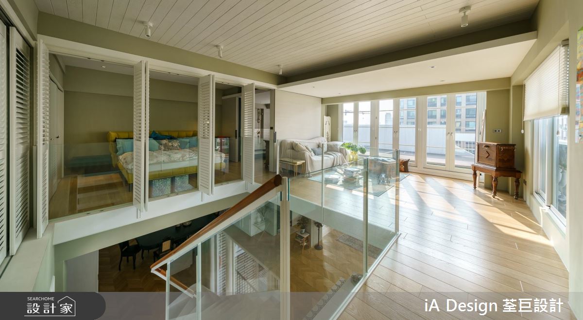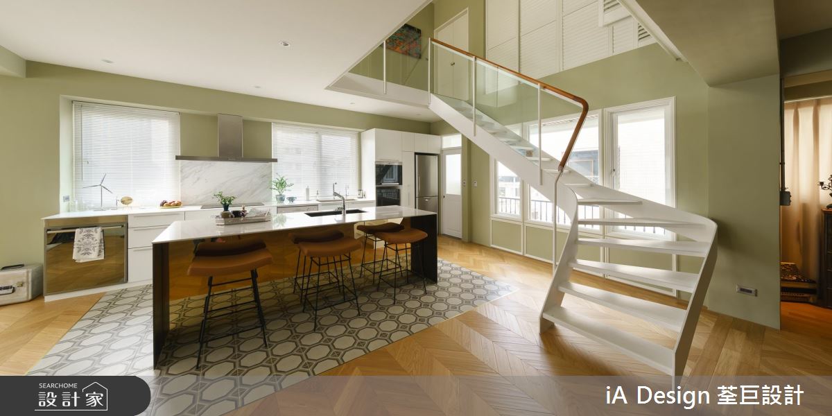 空間整體採以大面積木地板鋪陳,搭佐淺抹茶灰綠色的揮灑,呈現清爽舒適的氛圍,並透過窗戶納入最佳採光面,援引豐沛自然光,營造敞亮視野,搭配古董老件與家具妝點,帶出有如歐美影劇中的復古場景;餐廚領域,則刻意於地坪加入八角花磚,圍塑出專屬範圍,再設置一座中島吧檯定義位置,讓廚房隨時成為交流核心,達成與周邊的密切互動;同時改變既有的樓梯位置,再援引穿透設計規劃踏階與扶手,在流暢線條彎轉之中,串起公私領域的關係;來到二樓,可見到一處小起居室,藉由大面窗連結戶外露台,帶出明媚風光,並以多扇百葉窗作為主臥隔間,緊閉時,是隱密的獨立房間,開敞時,則共享起居客廳的光線,並坐擁更開闊的空間感!
