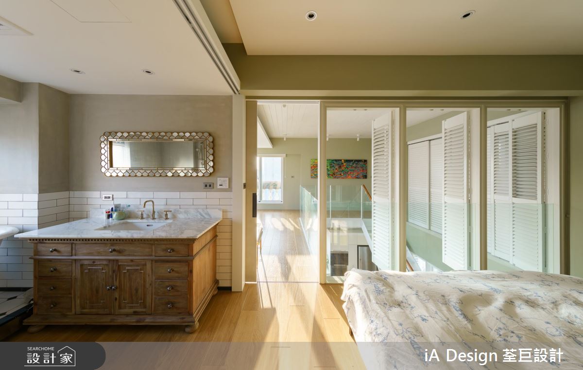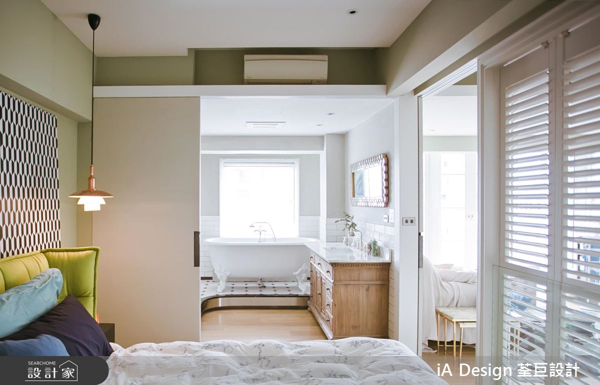 主臥、主衛以一道滑門界定彼此,但透過木地板的延續延伸,塑造場域一體感,並擺置一座獨立浴缸,上演歐美小公寓的隨興氣息!