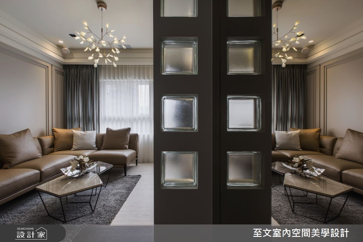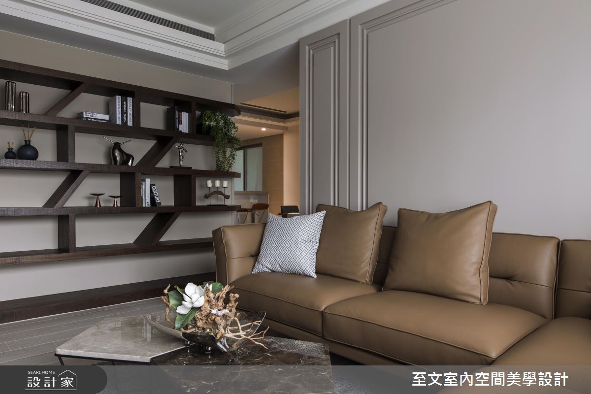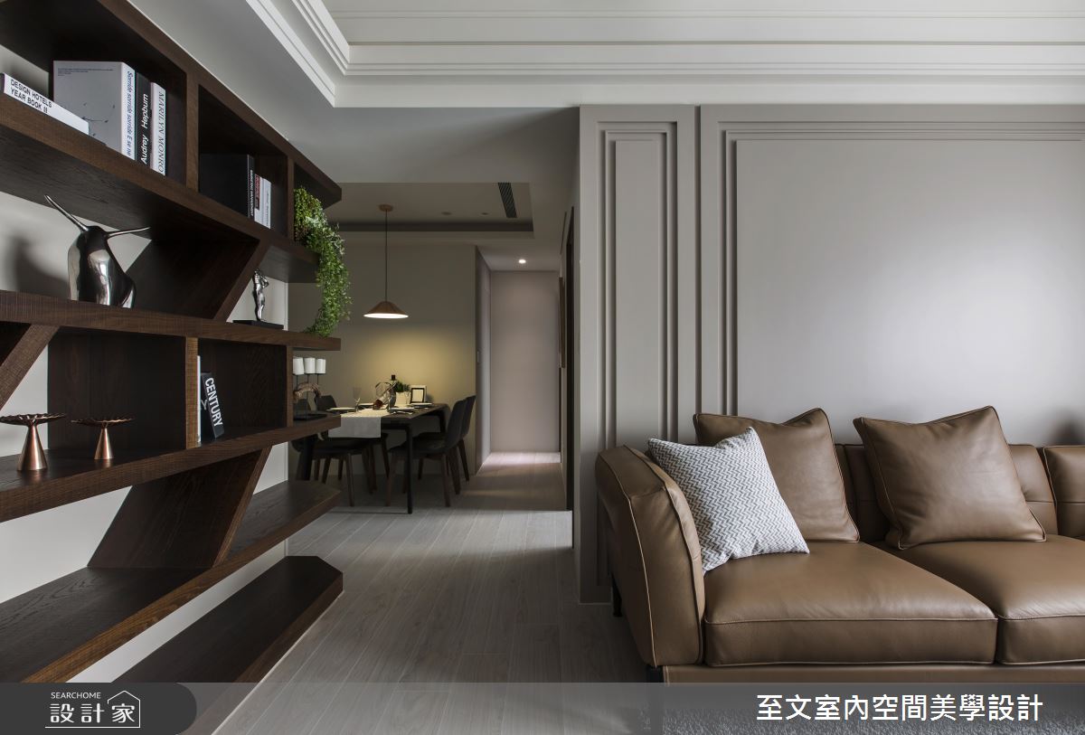步入居宅,於入口處規劃美感與穿透感兼具的隔屏,搭配鏡面牆設計,延續開闊的空間感,成為家人們返家時沉澱情緒的寧靜場景;廳區內,則透過大地色系作為主軸,以醇厚褐色調沉靜心緒,搭配窗面納入溫柔採光,呈現溫潤恬靜的氛圍,電視牆則採用質感大理石表現視覺質感,佐以立體的線條刻劃,讓主牆表情更顯深刻,並在客廳立面安置一面展示牆,加入開放式的層架設計,隨時提供屋主展示與收納的生活情趣,而天花上方的一盞造型吊燈,也提供了照明之餘的藝術裝飾意義;餐廳區,則回歸洗鍊的純白基底,與客廳形成開放流動的動線,並在牆面加入極簡畫作的妝點,讓人文氣息呼之欲出!