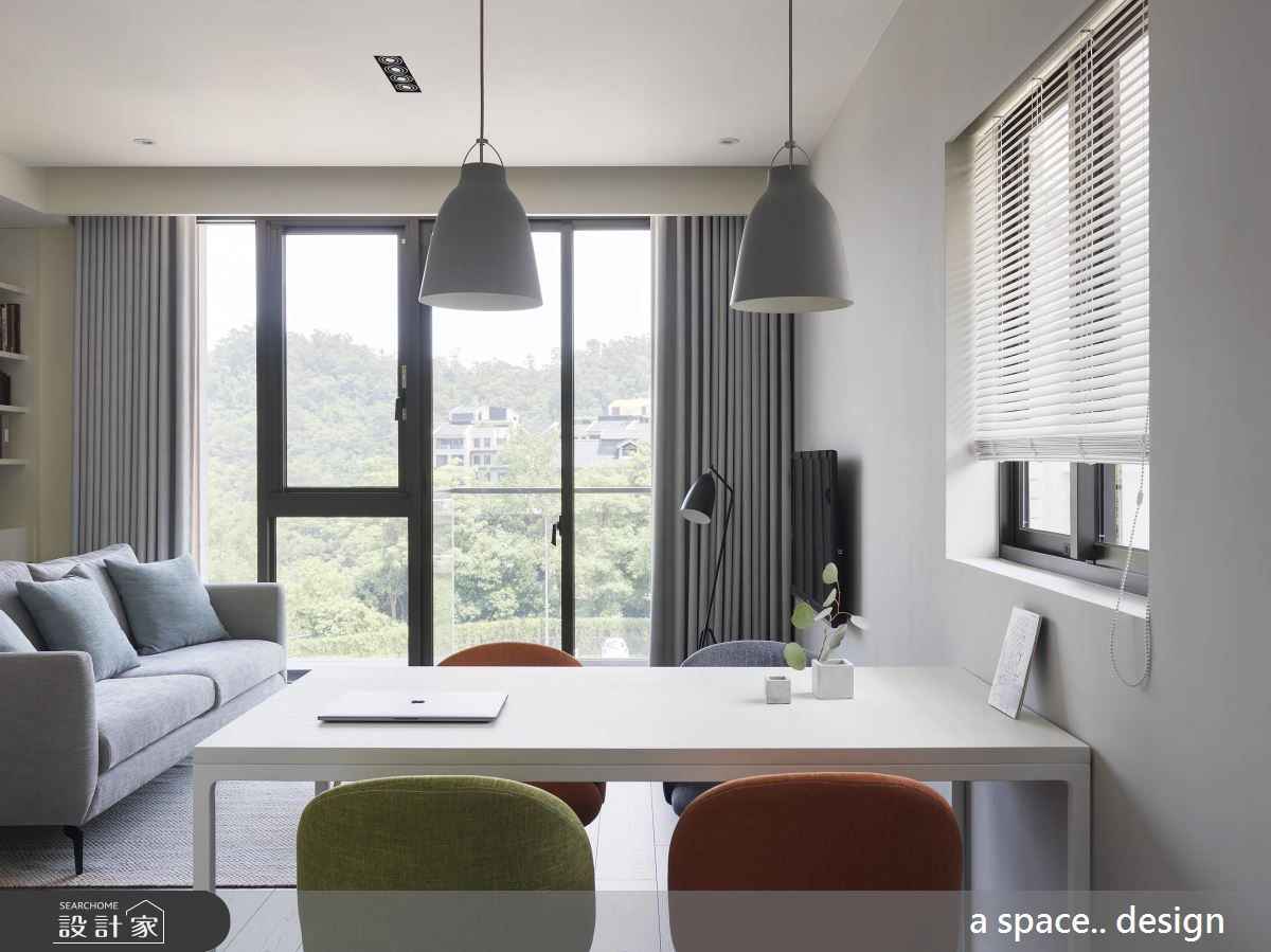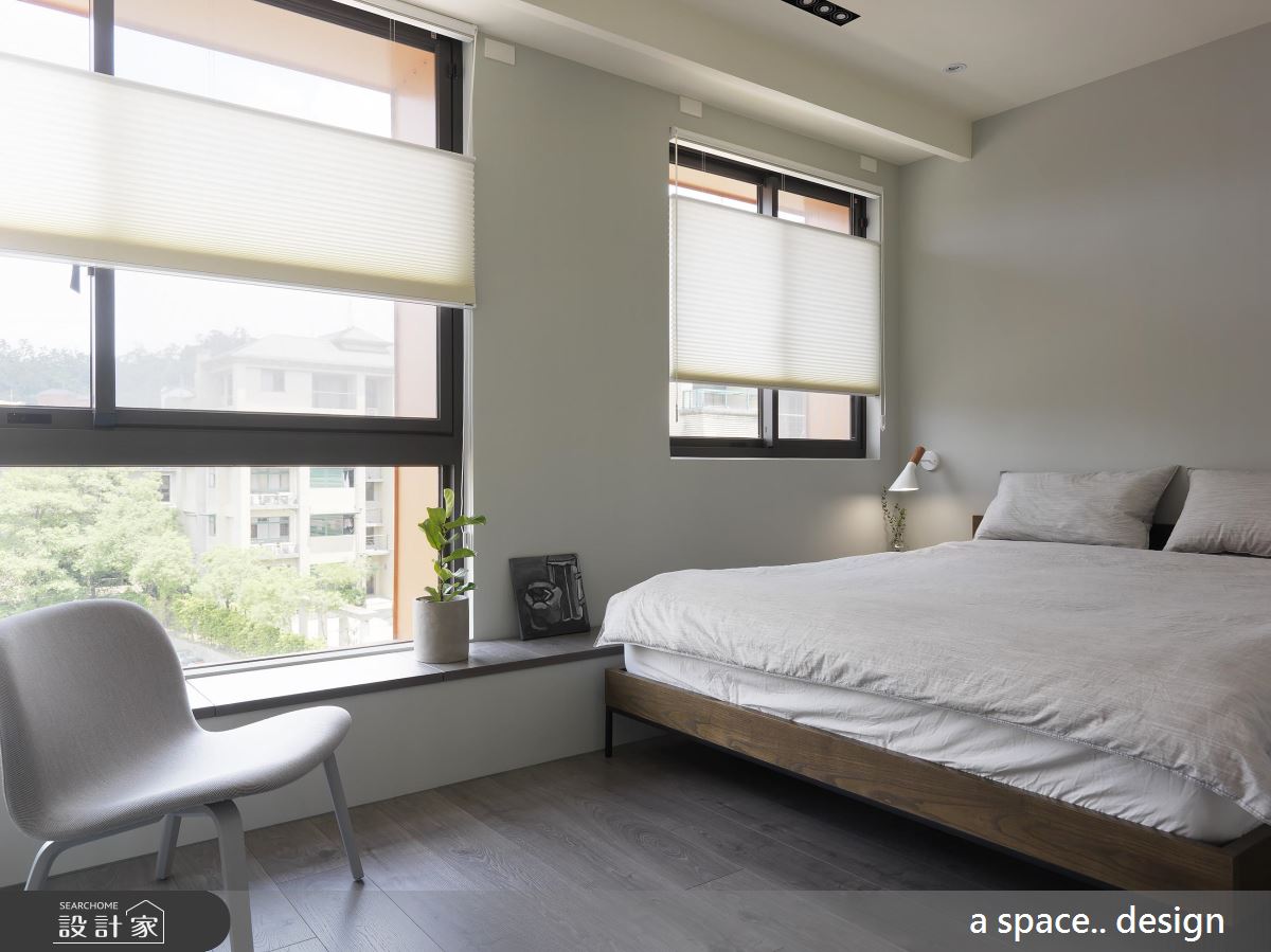 廳區運用大量淺灰貫穿全屋,並延攬多面採光,成就北歐居家的經典特色,同時讓四周牆面呈現簡潔風貌,簡化過度繁複的裝潢,使設計感家具與家飾作為主角、製造視覺亮點,如俐落感十足的造型餐椅、柔軟的淺色布沙發及抱枕等,都讓空間風格更顯鮮明,而可移動式的家具,也添加了使用上的高自由度,增添生活場域的變化性,沙發後方,則安排一整面展示兼書籍收納櫃,透過淺色定調櫃體,減緩量體的沉重感,搭配屋主收藏的家飾品妝點,打造公共空間的一幅人文端景畫;寢臥內,則承襲淡雅沉穩的自然色彩,並引用自然質樸的木紋、充裕明亮的採光,營造安定的休寢氛圍!