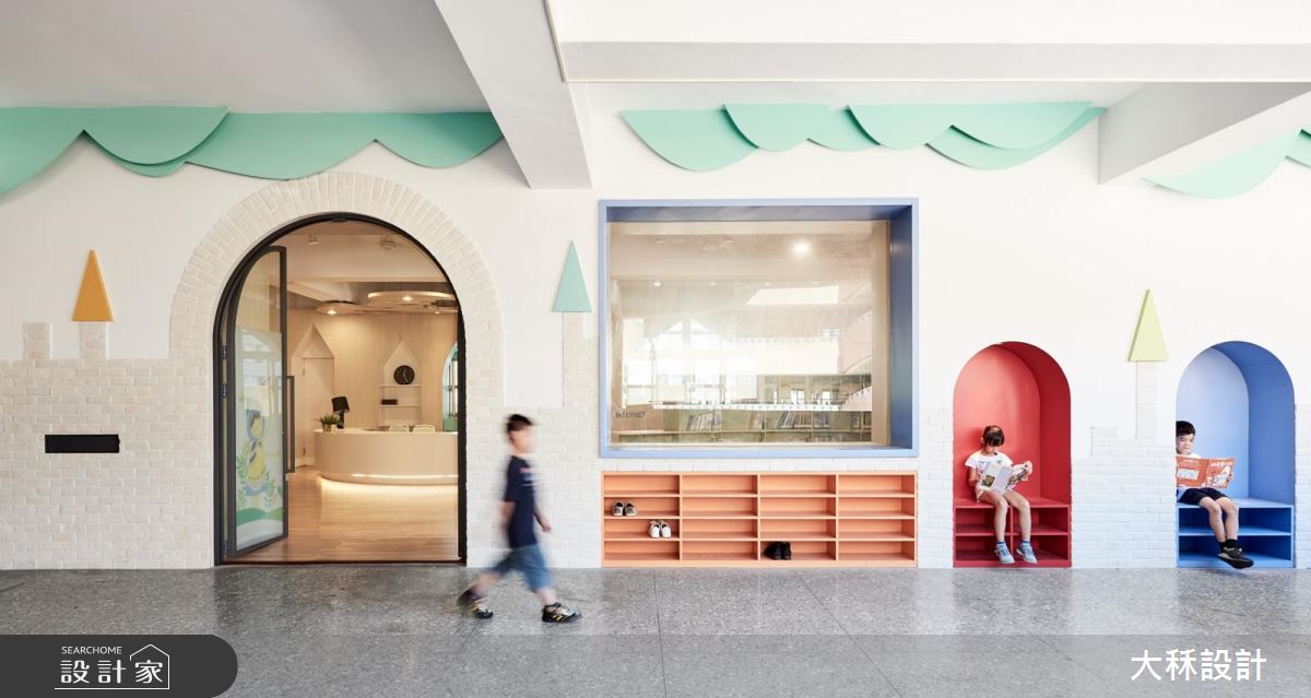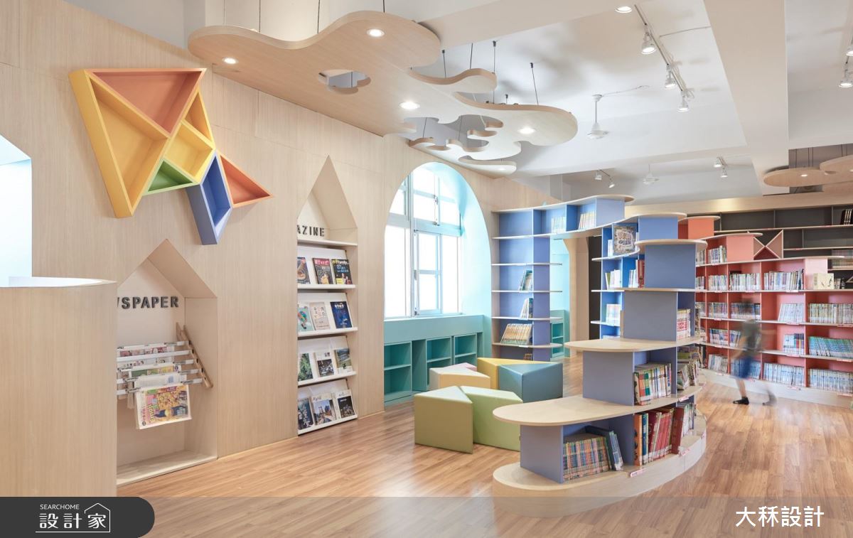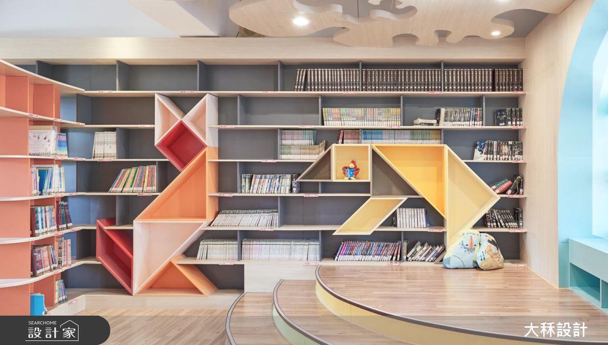 在外觀設計上,首先映入眼簾的是多層次色彩,堆疊出視覺趣味與繽紛活力,讓孩子有如即將走進童話城堡中,展開一場奇幻冒險之旅;步入室內,則可見七巧板的多元創意排列,在千變萬化的組合中,成就每個場域的書架或座椅,並啟動高低起伏的線條與左右逢源的動線,無論是閱讀區或櫃檯區,都充滿著各自的趣味視野,同時,也保留每一扇窗的自然採光優勢,凝聚空間內的明亮光感,且刻意維持窗檯高度,享盡開闊場景,締造無壓溫馨的閱讀氣氛!