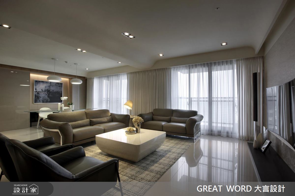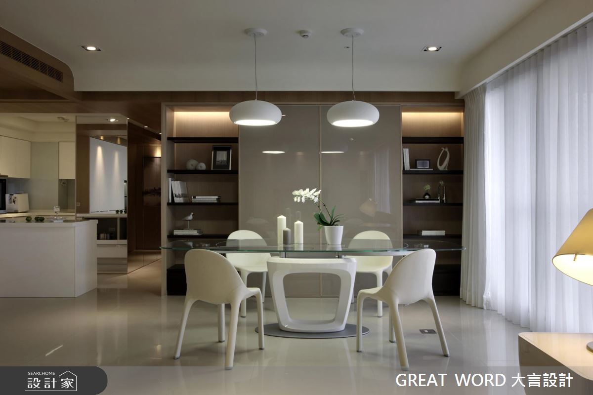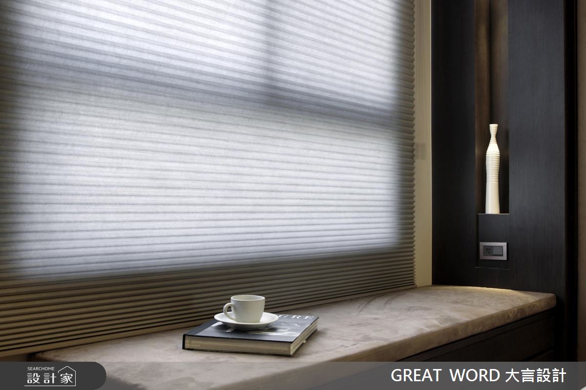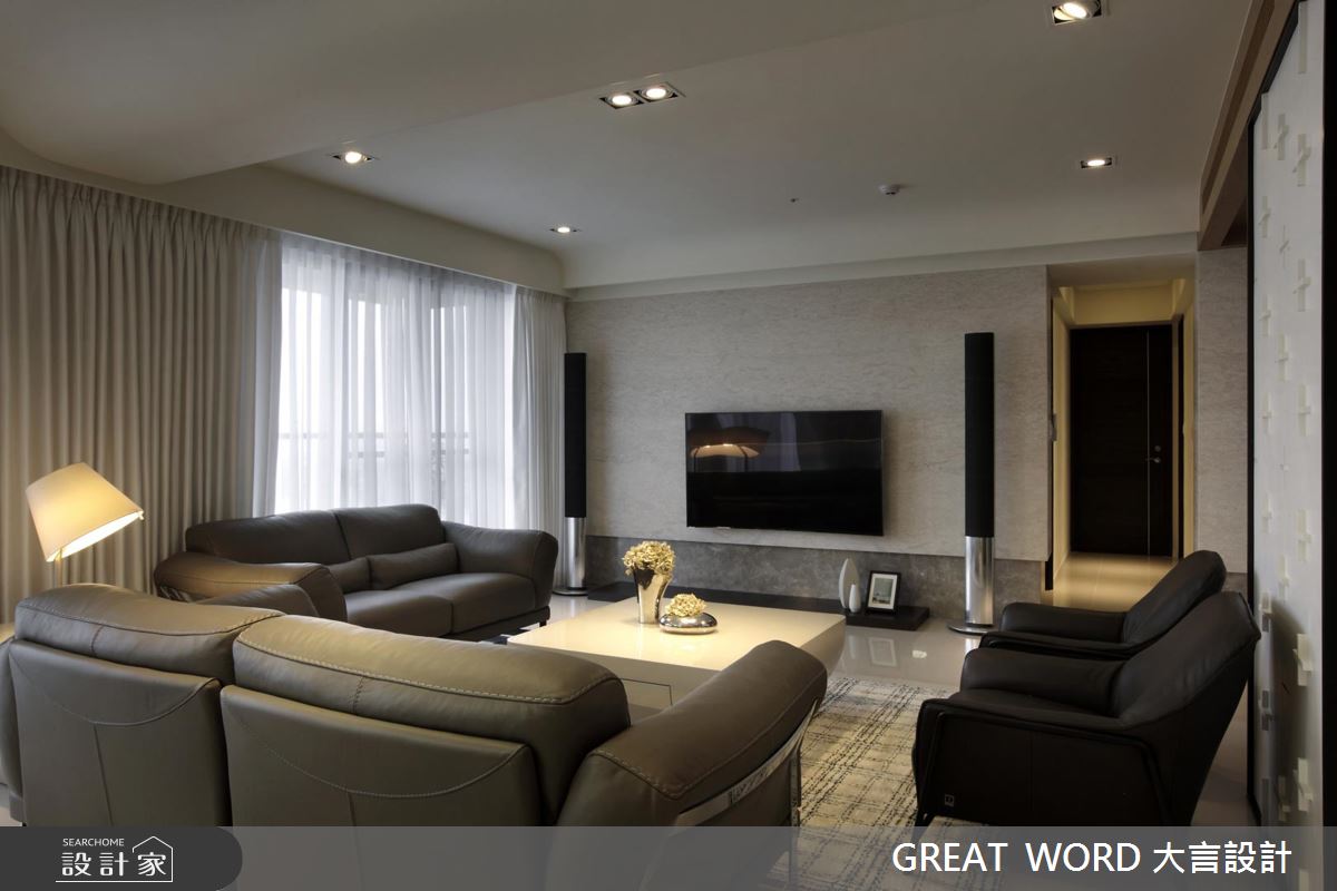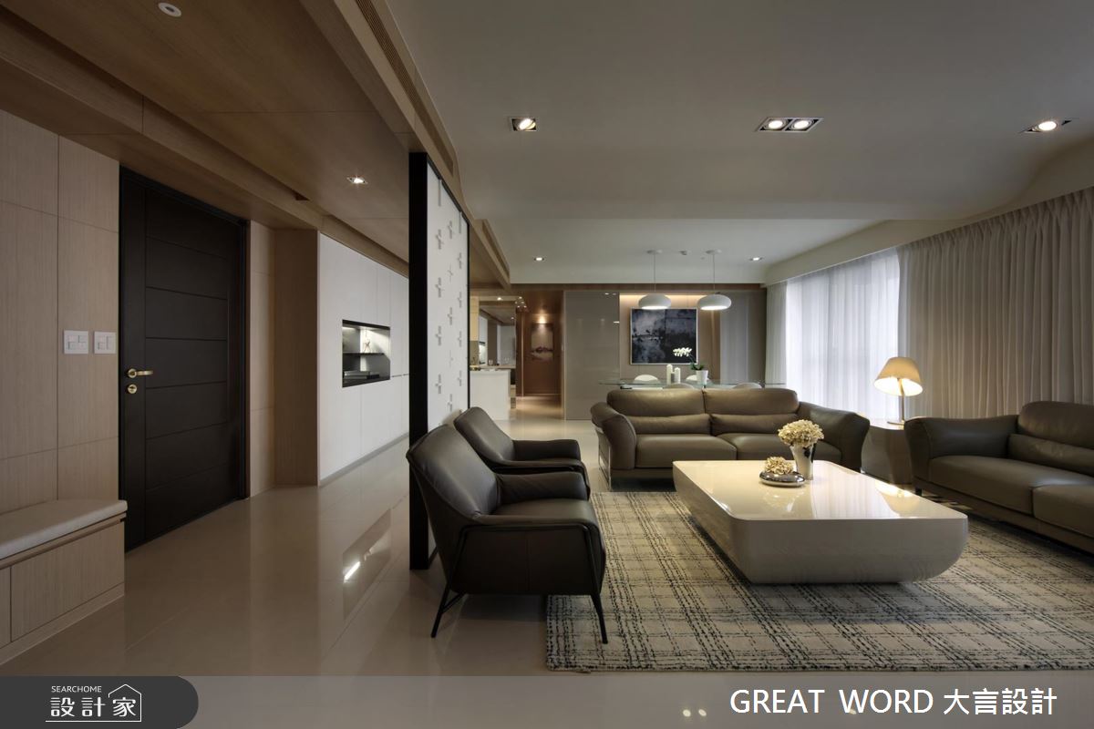 玄關處,於隔屏上加入運算符號「+」,將家庭擁有的情感、溫馨及和諧抽象化,帶出整個居宅的主旨,象徵家人之間的濃密感情連結;空間規劃上,亦以家人間的「擁抱」概念串起居家,表現其意境,像是運用弧線造型及輕盈和諧色調,象徵擁抱後的感動及情緒波動,另一方面更以同色系串聯公共空間,包覆突兀的大樑缺陷,消弭視覺壓迫感;整體處處可見低斂的垂直及水平線條,勾勒隔屏及櫃體造型,型塑簡約俐落的架構,並使用白色作為基調和自然的石材肌理,帶出電視牆的層次,締造清爽工整的主視覺表情,而天花板則運用木皮紋理拉長空間水平軸,界定場域範疇;寢臥內,呈現優美的質感,以帶有絲光的裱布壁材作為床頭主牆,佐以適切的家具式樣烘托氛圍,醞釀出一個自然和諧的起居情境!