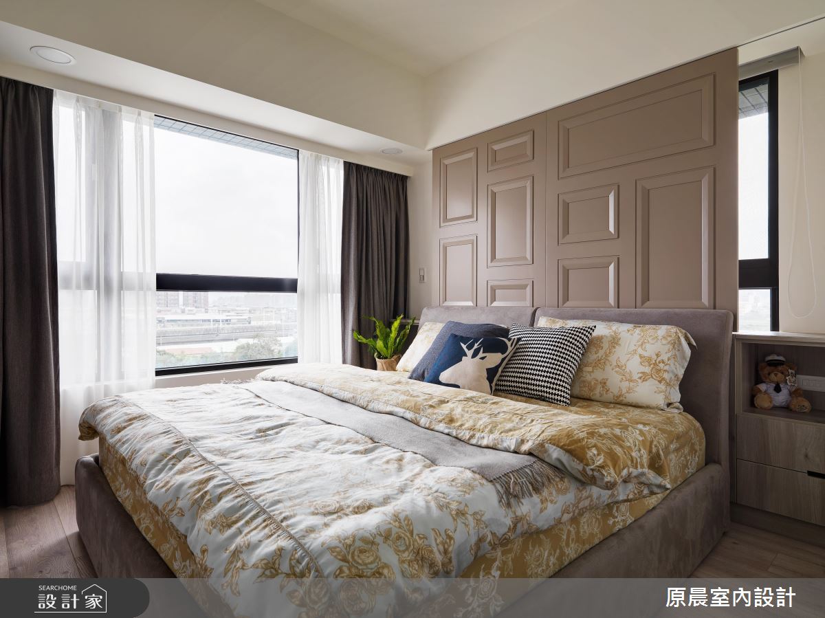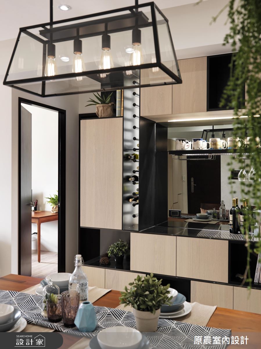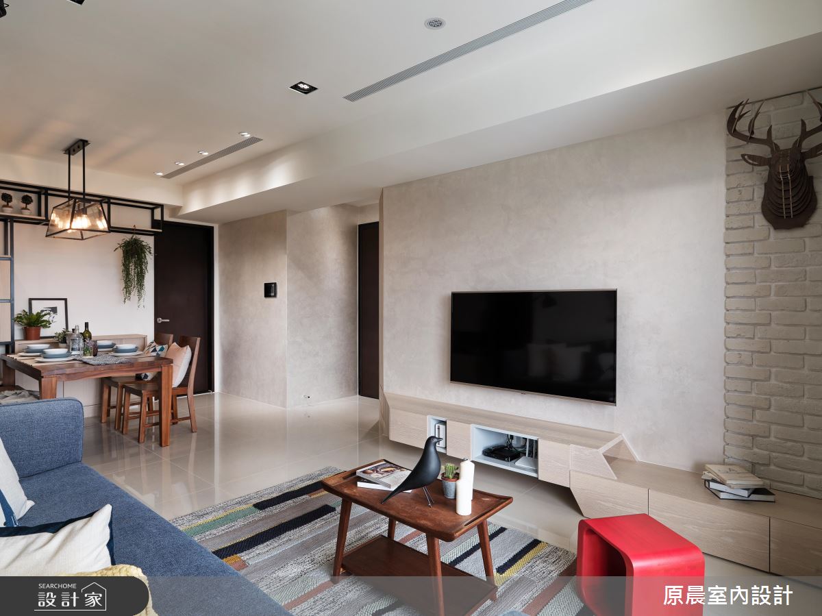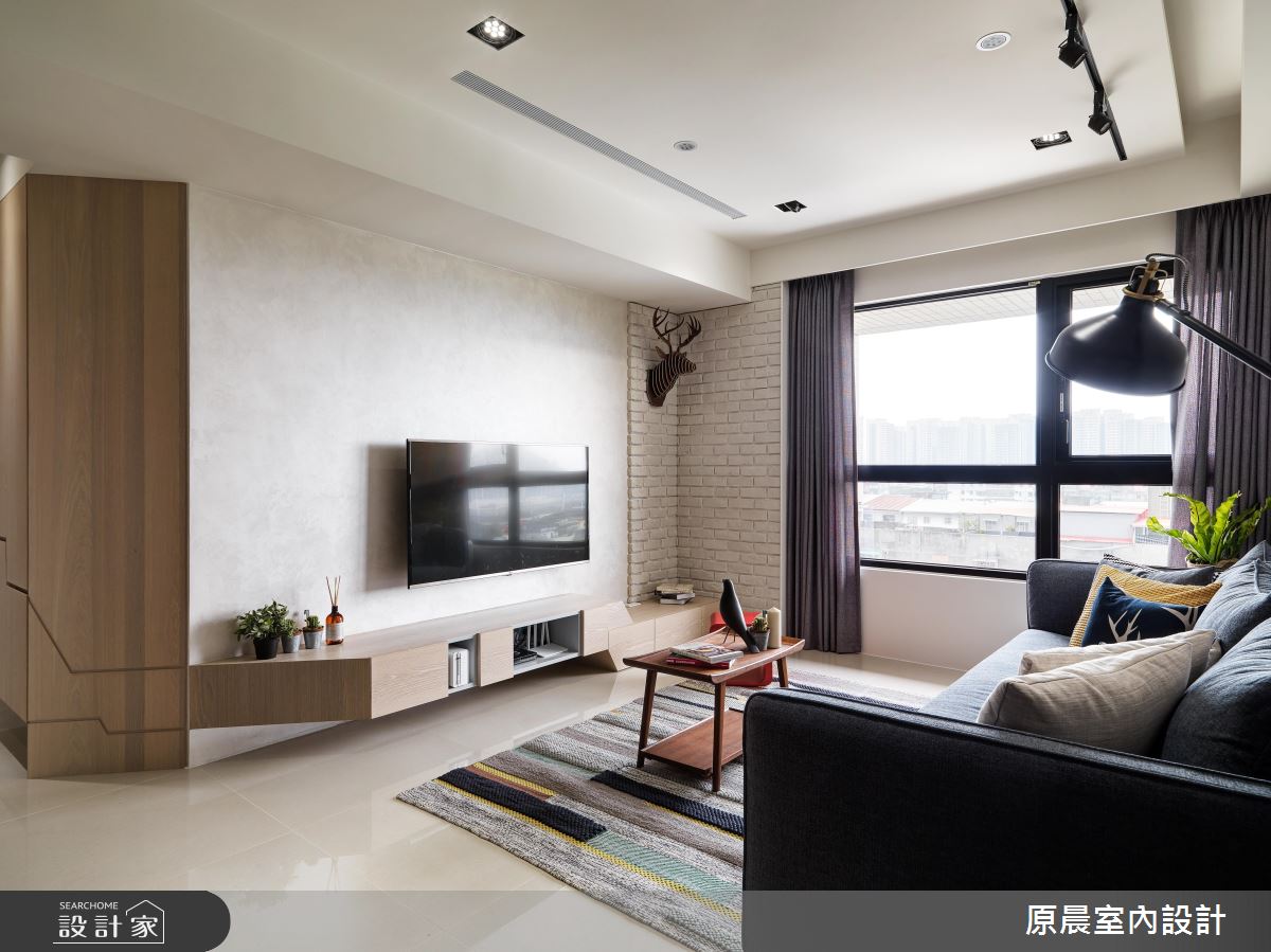 室內加入俐落簡潔的線條,佐以明亮素雅的配色,並刻意於電視主牆加入特殊塗料,運用手刮的紋理增添自然質感,一側加入文化石點綴,補足視覺平面的層次感,底下配置一體成型的視聽櫃體,讓收納更加輕而易舉,客廳則選用自然不做作的家具擺飾,為淨白的視覺空間,點綴了幾分俏麗質感;餐廳、廚房呈現開放型式,串聯使用尺度及機能,並採用透空櫃體塑造簡潔風貌,加以黑色鐵件勾勒,搭配餐具、藝品與照片等裝飾,凝聚立體深刻的櫃面表情;寢臥內,透過大面積開窗導引光線,烘托滿室明亮,搭配床頭的塊面切割,展現立面的迷人魅力!