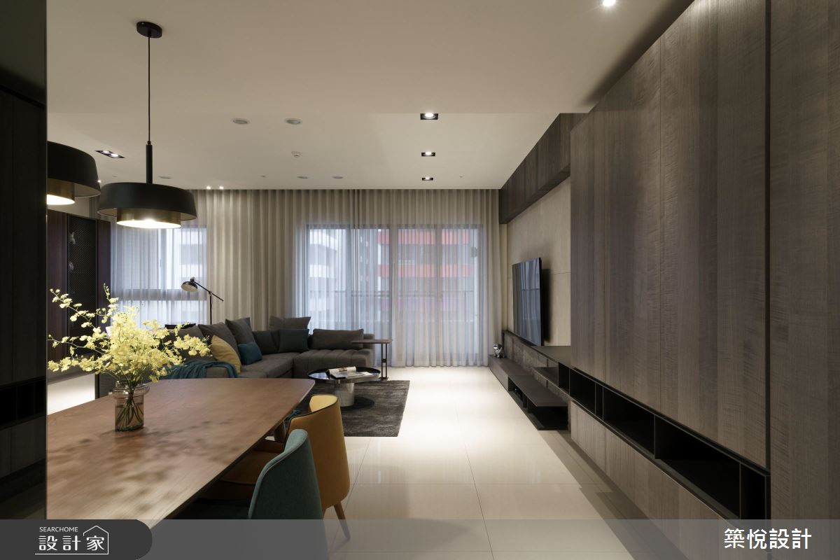 簡約、時尚的 38 坪現代風居家,設計師賦予大量而實用的收納機能,並藉以簡歛灰質、木調色彩,搭配燈光佐飾,調製出具有人文氣息的優質生活氛圍。
