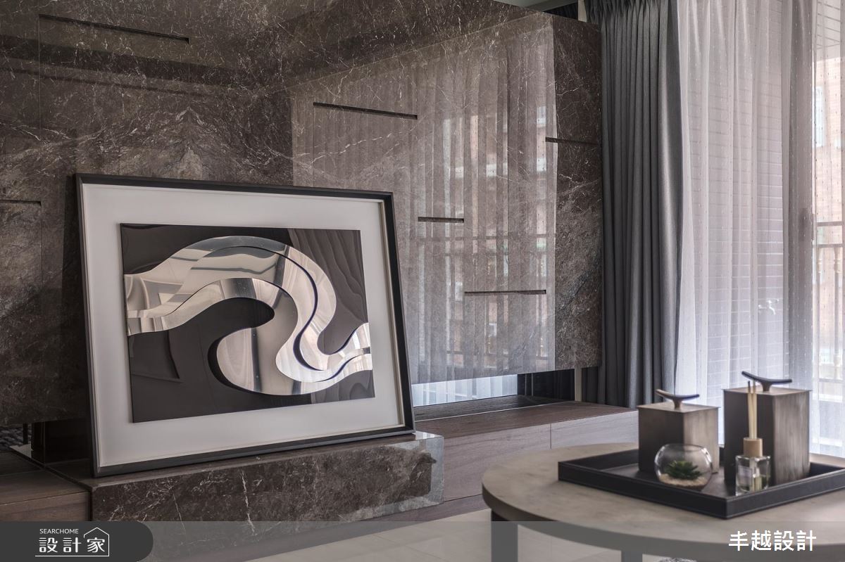 以黑、白、米、咖啡色系為基調,整體空間運用大理石與進口系統板搭配,展現出內斂、俐落感的現代線條,再藉由皮革、灰鏡材質的局部妝點,交織出非凡的時尚宅居。
