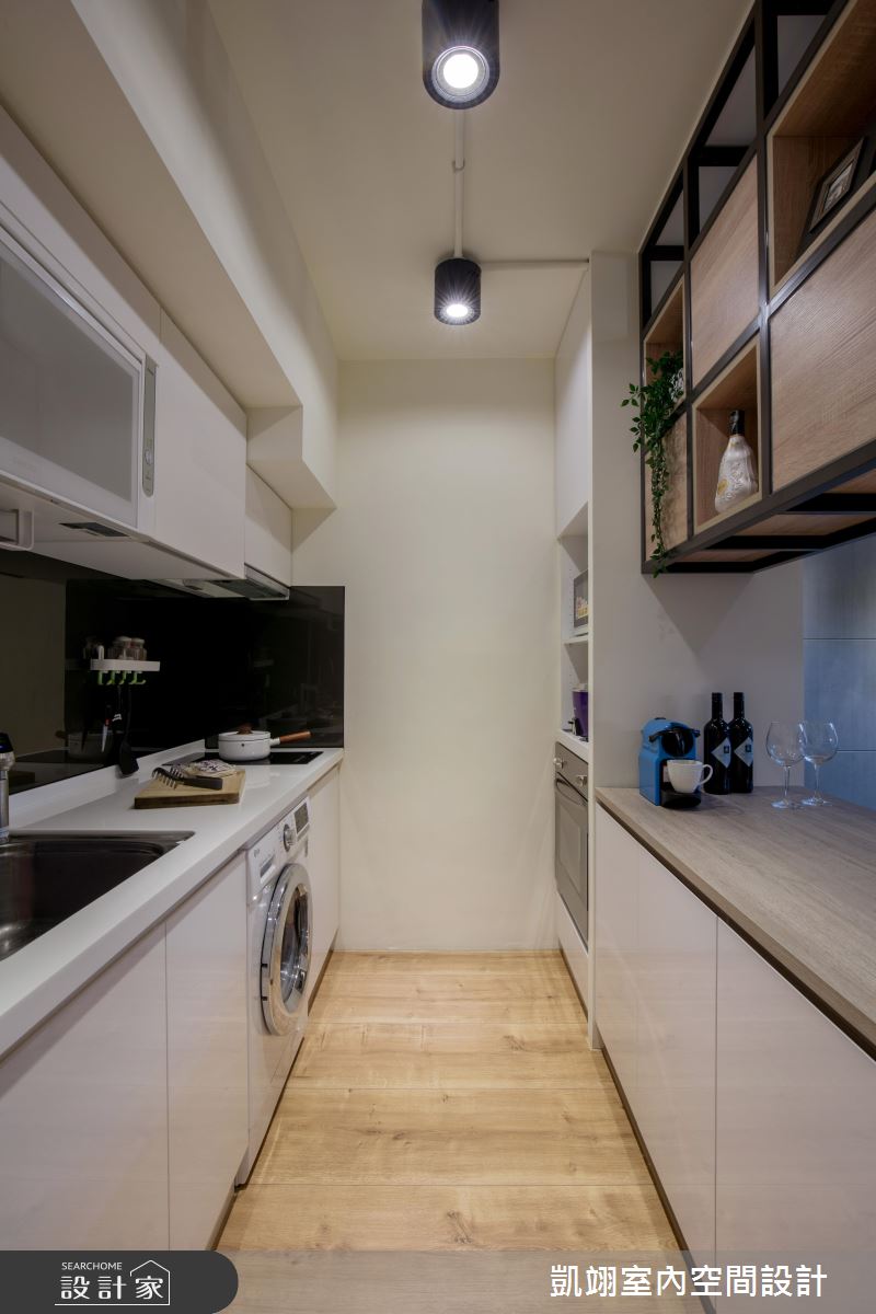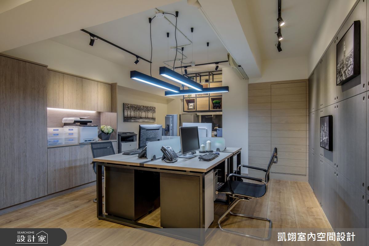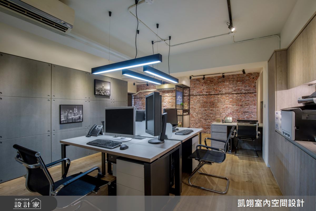 一同創業旅行社的夫妻,為了精省開銷同時兼顧事業,選擇市中心交通極為便利的舊式住商大樓作為住辦合一的起家厝。凱翊設計順應屋主需求與喜好,以辦公空間為主,保留 1 房做為私人起居,並以工業風格串連整體公領域空間。