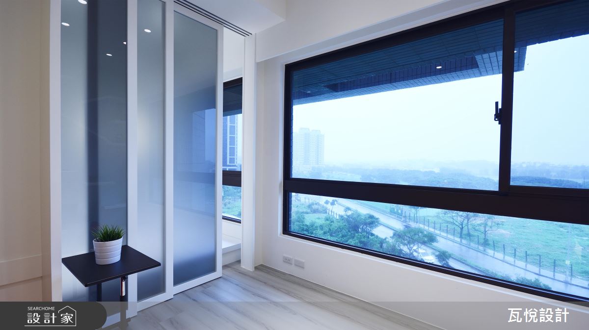 設計師規劃臥房時,因應屋主需求將客房一半空間作為更衣間所用;主臥床頭有風水疑慮的開窗則採用門片修飾,可隨心開闔。