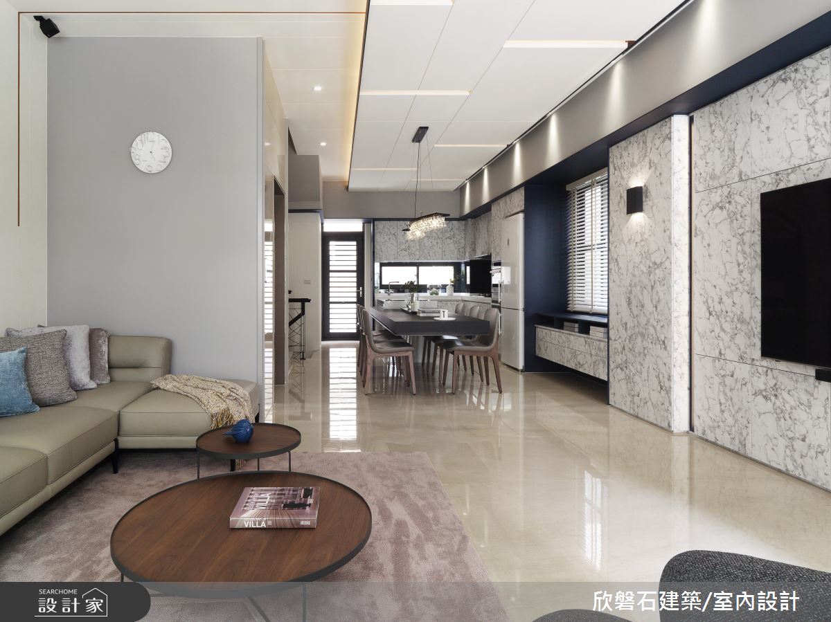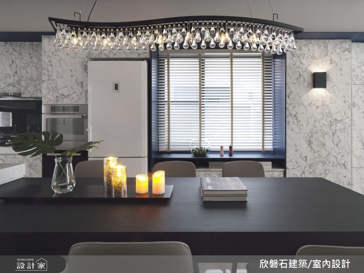 根據設計家 2018 裝潢趨勢報導,大理石成為最受歡迎的建材之一,從 2015 年起,在各式精品配件、甜點領域都頗受歡迎,近年室內裝潢也搭上這波大理石風潮,欣磐石設計團隊在本案運用大量的大理石元素,創造高端時髦氣息。