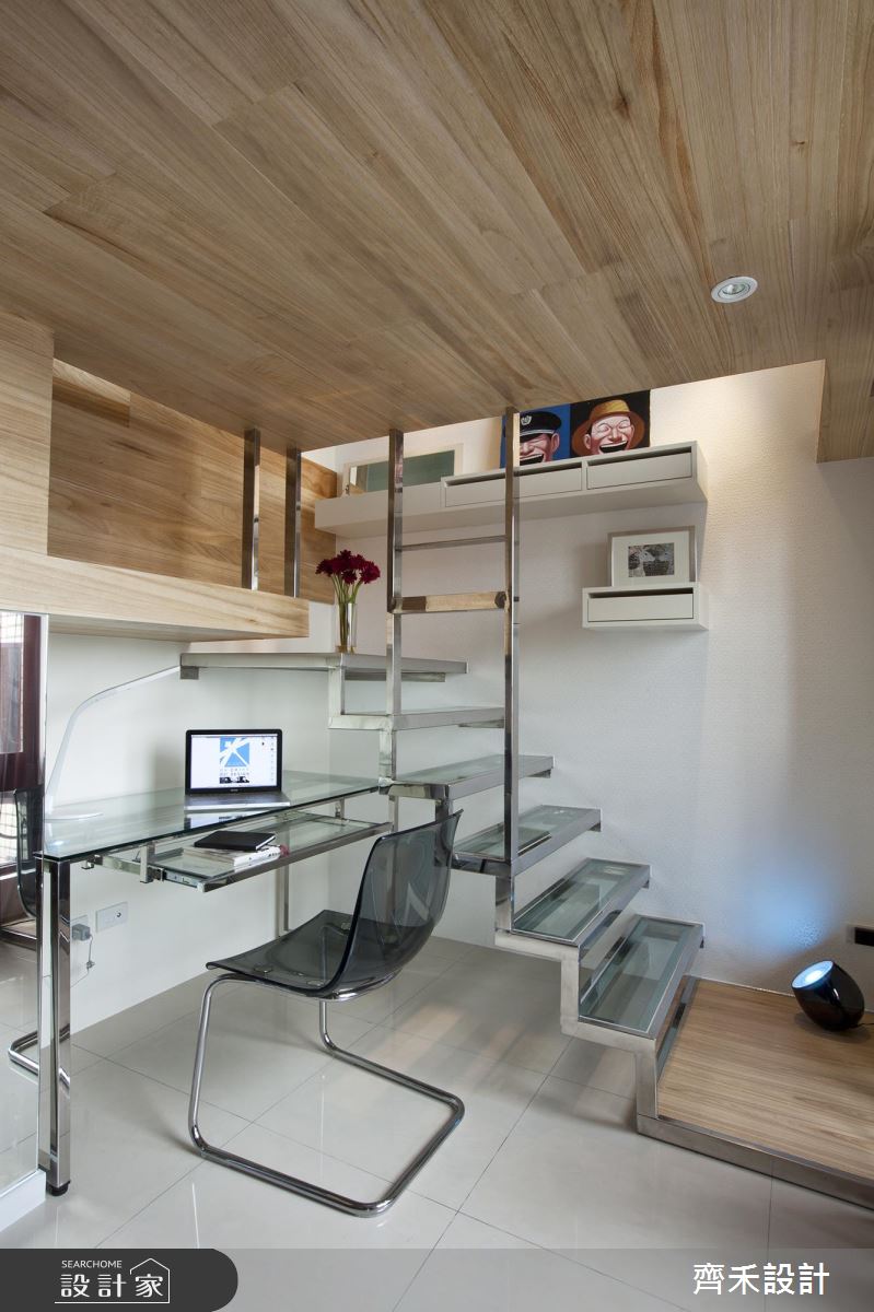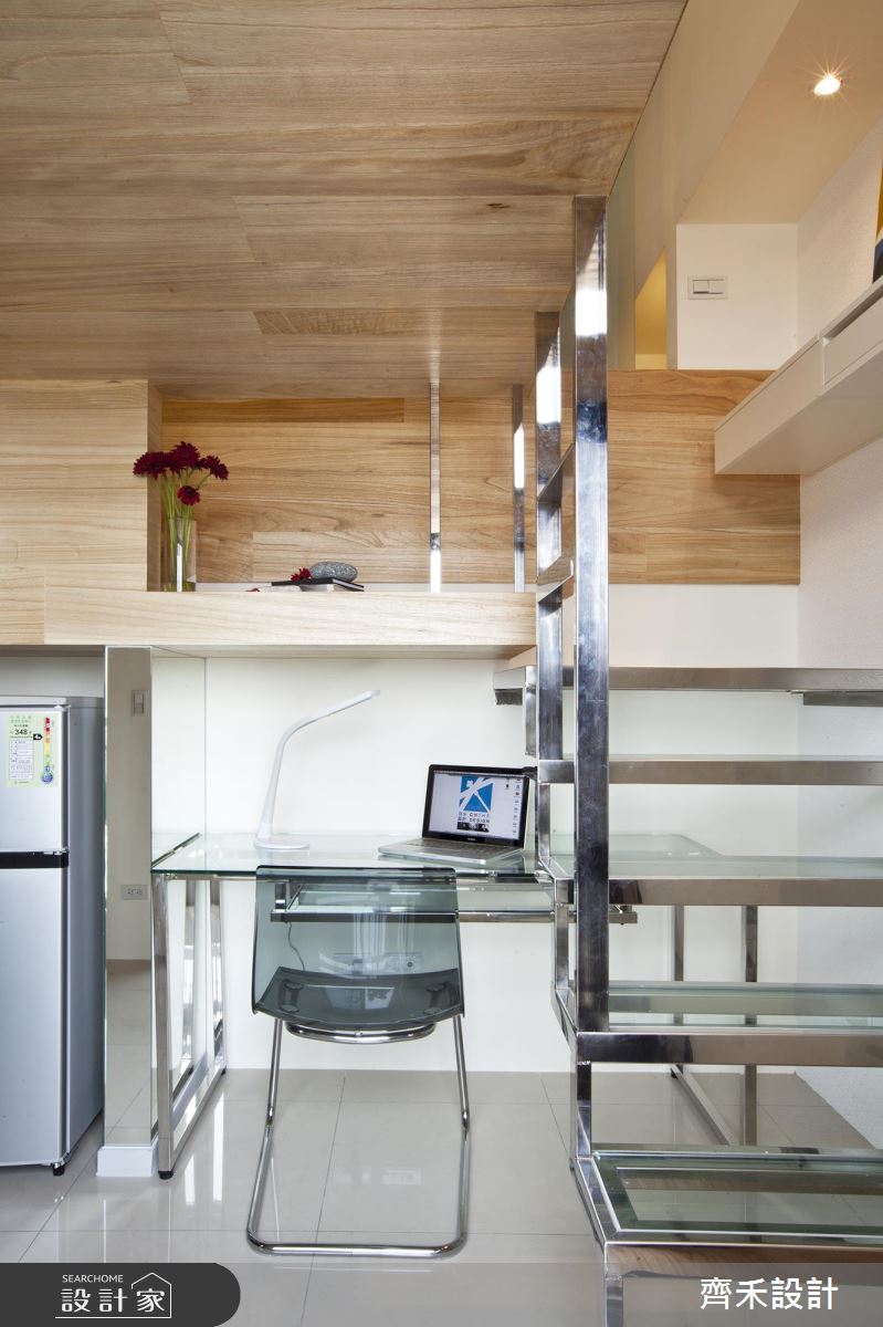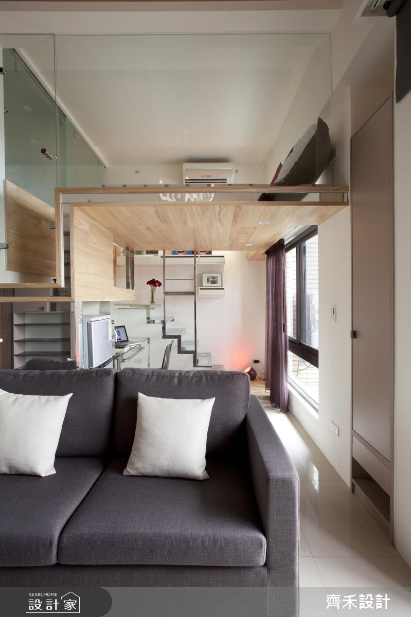 藉由復式夾層規劃出上下不同的空間運用與機能,像是下方是衛浴空間、上方便為儲物間;下方作為客廳、上方則是臥室;下方規劃書桌、上方則為走道,整合垂直空間並融入生活機能,激發小宅無限潛能。