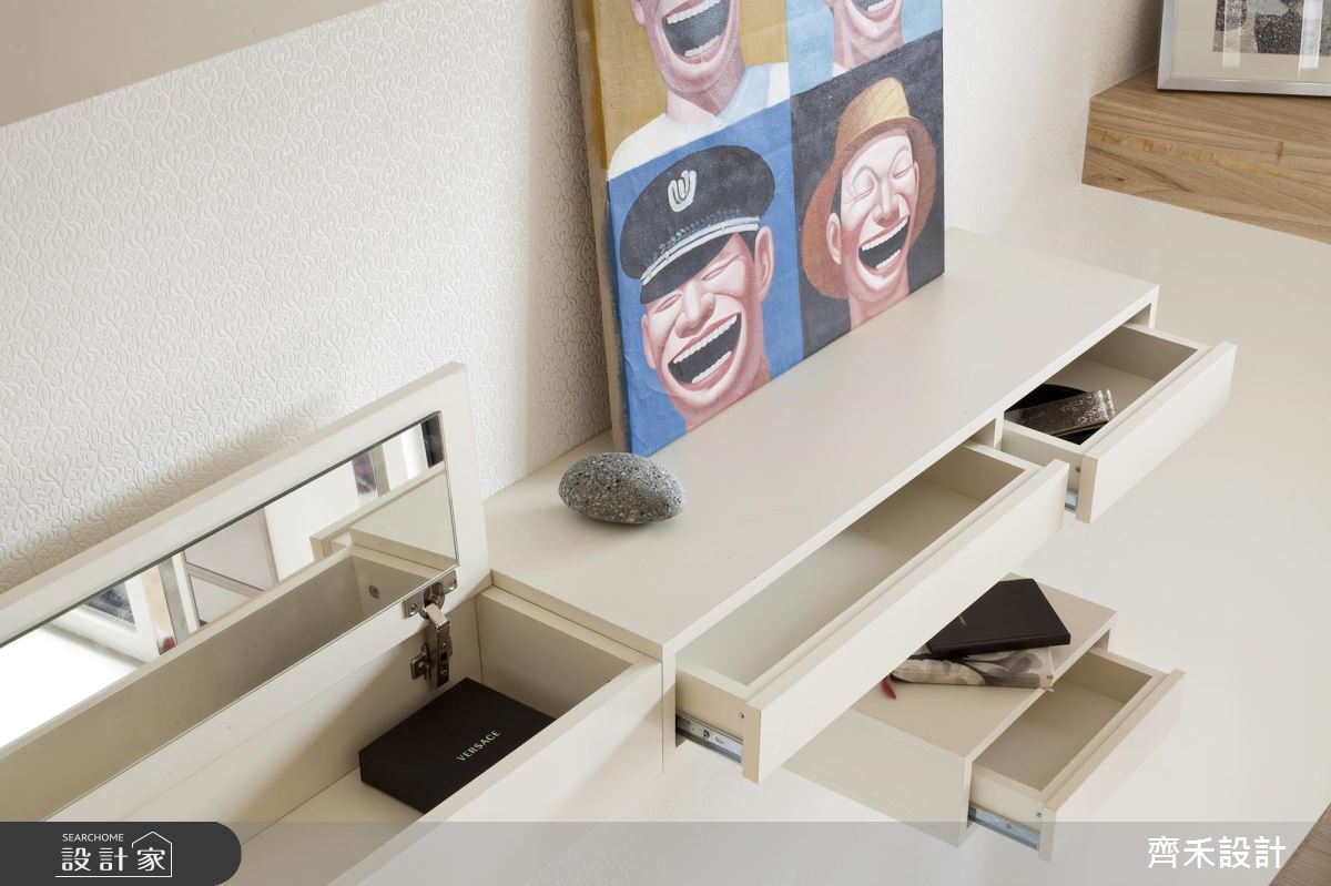 從事需時常翱翔天際的空服工作,忙碌的生活裡,期待回到家後能將天空的無壓愜意感受延伸到家的空間裡。經設計師的巧手設計,不到百萬的預算下,6坪的小宅空間以簡約現代風做為展現,藉由夾層解決原本屋高的問題,並納入超強的收納機能滿足生活所需,讓空間的運用更活潑、靈活。