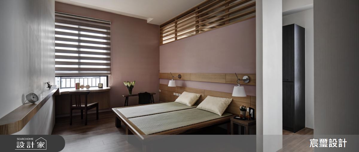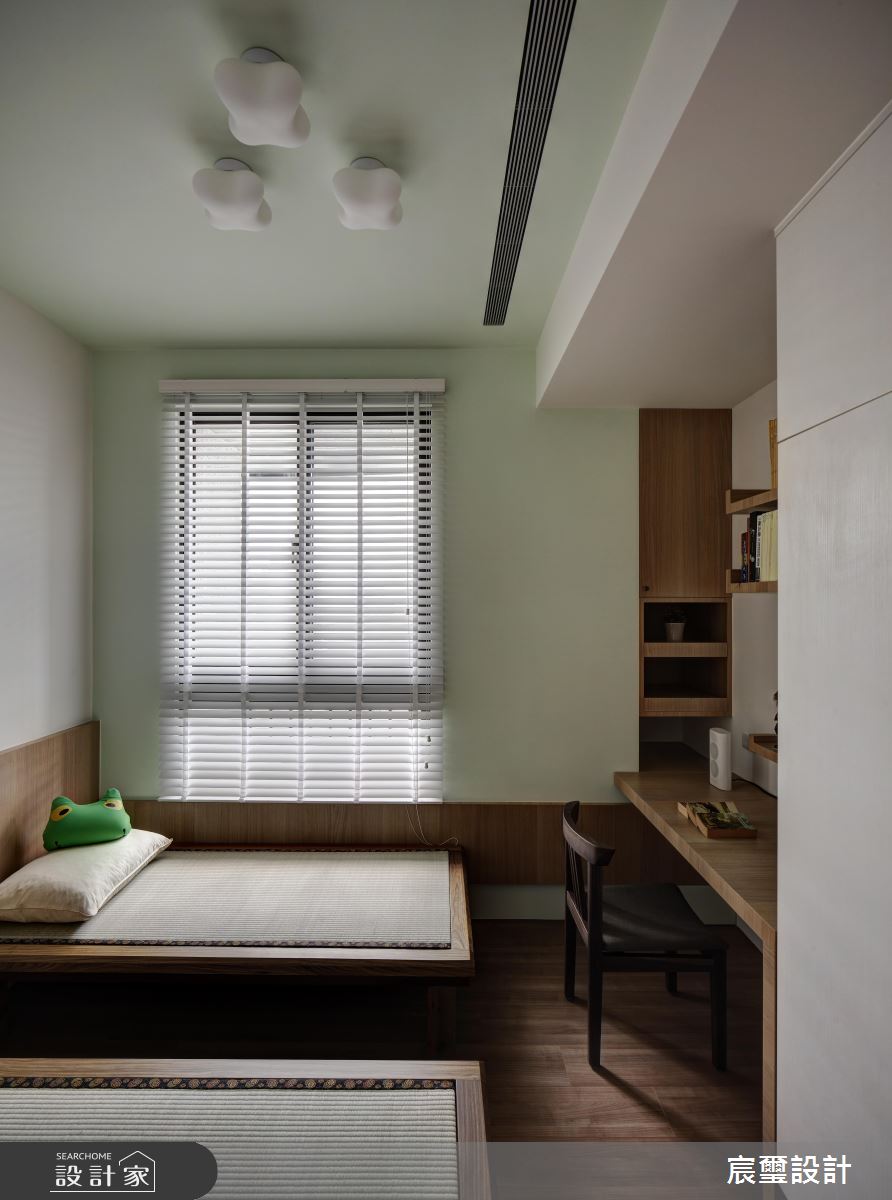 小孩房中,刻意選用嵌入榻榻米的床架,不禁讓人聯想起鄉下的簡樸氣氛,而牆面的淡雅漆色,則適時跳出年輕感,讓空間顯得舒適而不過份老氣!