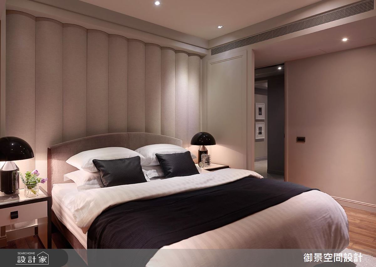 主臥空間裡,藉由玻璃打造精品質感的更衣室,衛浴裡擁有雙洗手台設計,以及獨立式的浴缸設備,享有風格旅店的優質設計,展現屋主自身獨特的風格追求。