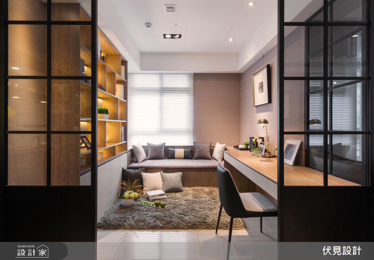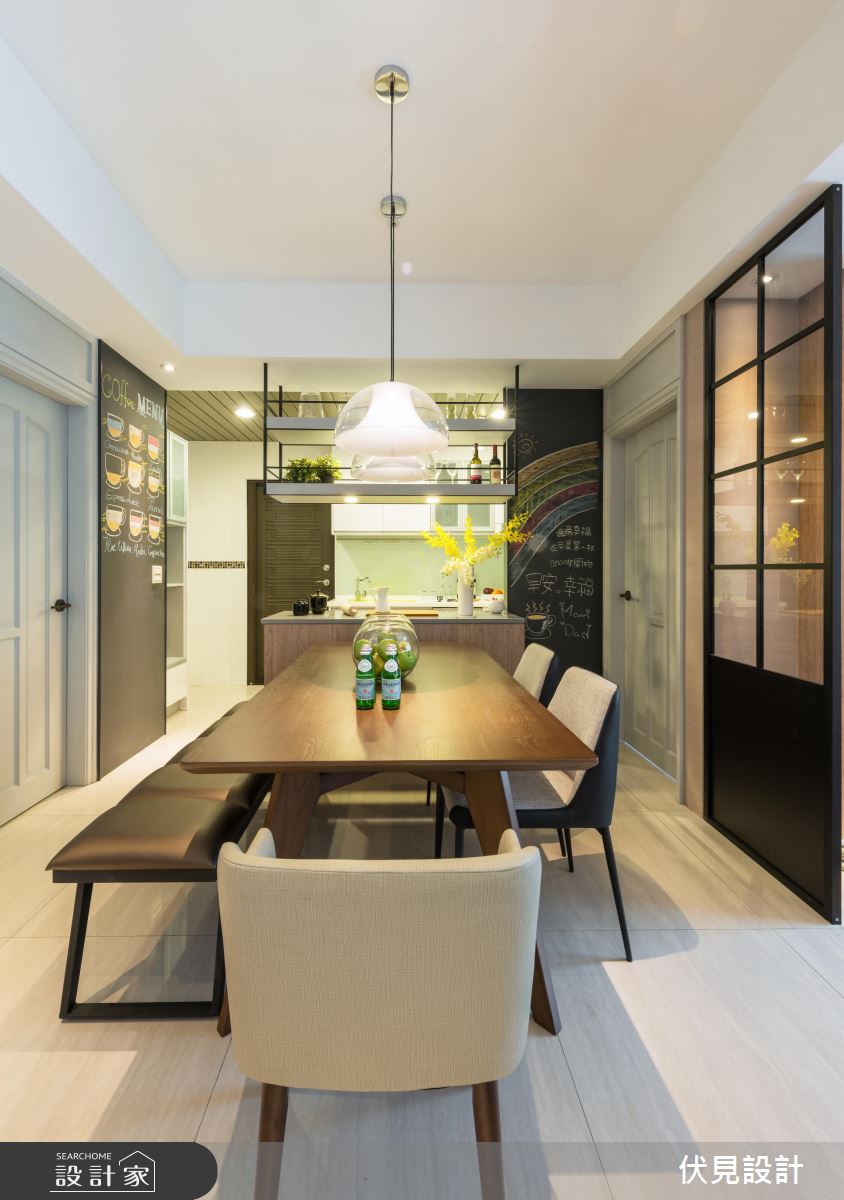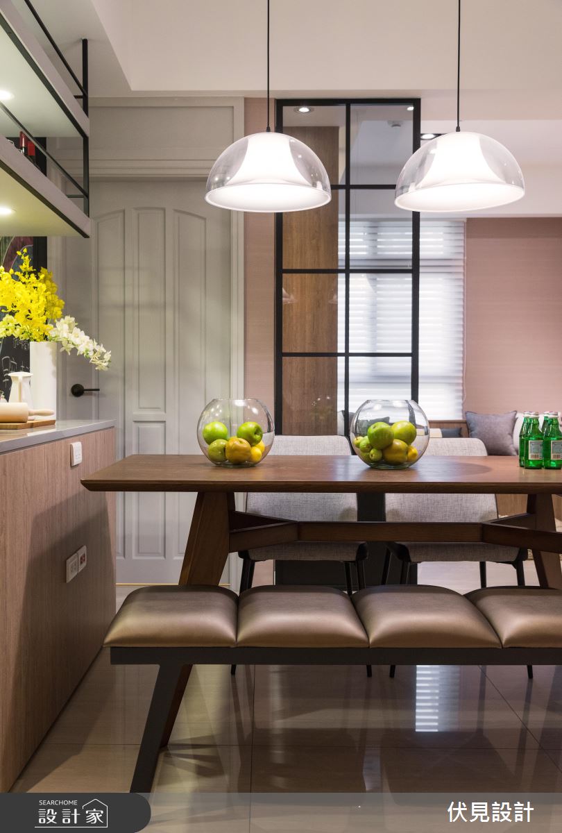 公共空間融入以中性偏暖的色彩,利用粉色鋪陳廳區牆面,但適時在電視牆妝點氣派石材,讓整體視感優雅又大方,同時讓公領域呈開放規劃,創造開闊格局與無私的互動機會,再援引和諧燈光烘托柔美氣質,彰顯雅致典麗的大器氛圍;書房,則加入半穿透的玻璃鐵件隔間圍塑範圍,輕盈劃下客廳與書房界線,並保有視線穿透,與餐廳及客廳皆能形成交流,內部則除了櫃體機能,亦打造舒適臥榻,與日光構築成極佳的閱讀角落;一旁,緊鄰開放式餐廚區,讓主人來客不管坐在哪裡,都能暢快聊天,而牆面更特別加入黑板牆,讓人隨時可在此處留下心情點滴!