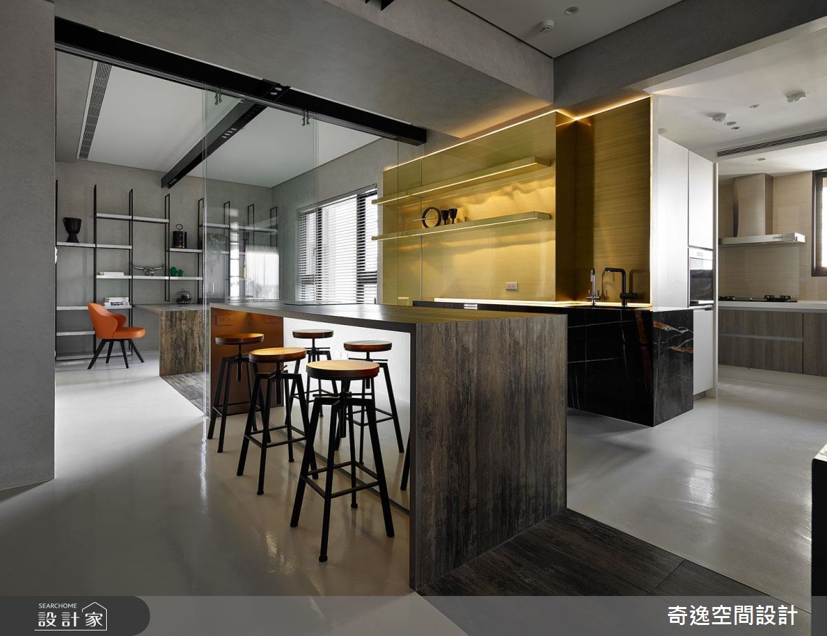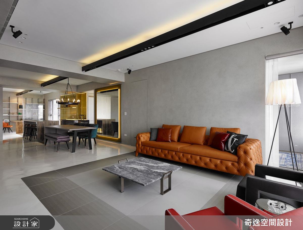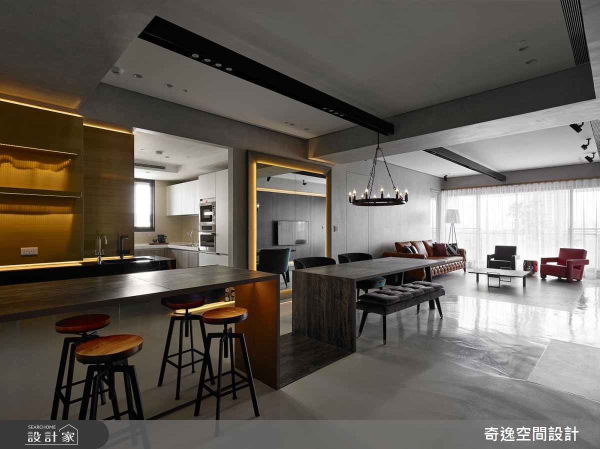 整體空間為長方屋型,利用現代風的俐落明快,結合工業風蘊含的自然原始之美,局部搭佐LED燈的方式,調和出混搭、漸層的美學境界。