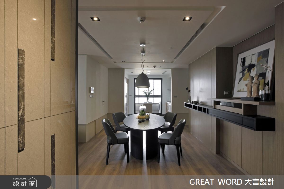 設計師第 2 次與屋主合作,將重新遇見故知的喜悅之情表現在 85 坪的新成屋中,規劃上以屋主習慣的機能,運用簡潔俐落的的手法彰顯富有視覺紋理的生活感受。玄關利用灰階磁磚以及橡木皮打造沉穩簡潔的入門景象,屏隔除了抹除穿堂煞的問題,更巧妙營造了左窄右寬的視覺比例,一面與電視牆接壤,選用石材延伸至窗邊、一面則利用開放設計開展廣角視覺、打造空間景深。公共空間以低彩度的自然建材為主,散發沉靜氛圍;針對餐廚空間規劃,採用直向動線串連烹飪和餐桌,打造流暢動線。獨立書房則善用金屬隔柵與玻璃隔間,打造通透純淨的視覺感受。