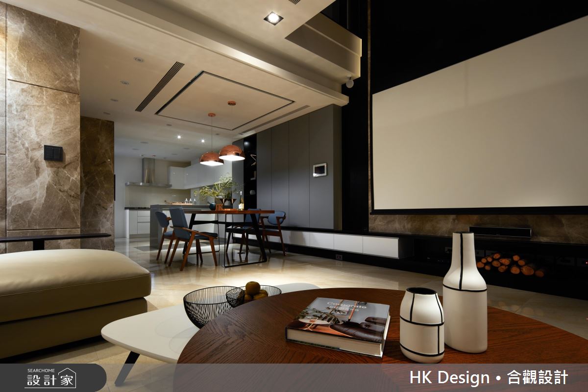 客廳,規劃從天而降的投影布幕,取代一般傳統電視機屏幕,讓人在家即可享受到電影院規格般的視聽饗宴,上演幸福生活劇場!