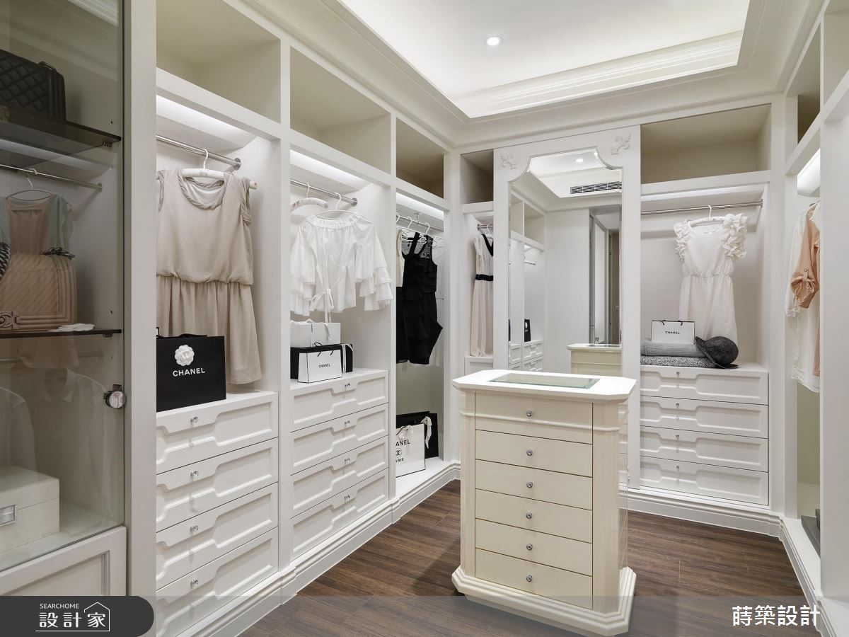 設計師針對屋主需求規劃專屬更衣室,除了充裕的置物空間,每道櫃面、把手甚至踢腳板都可見精工處理,成功打造出女人心目中的夢幻天地!