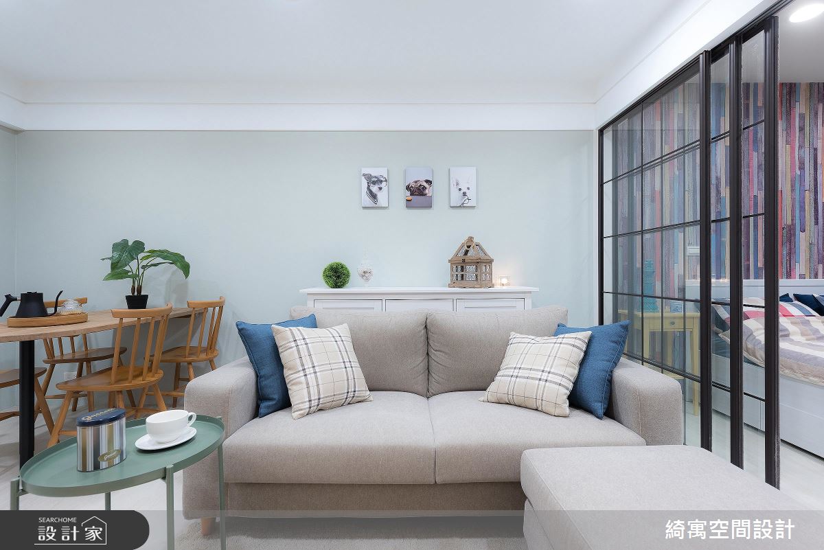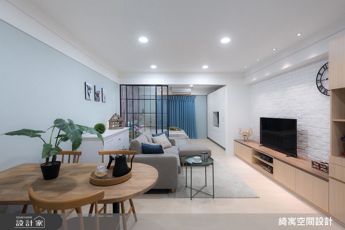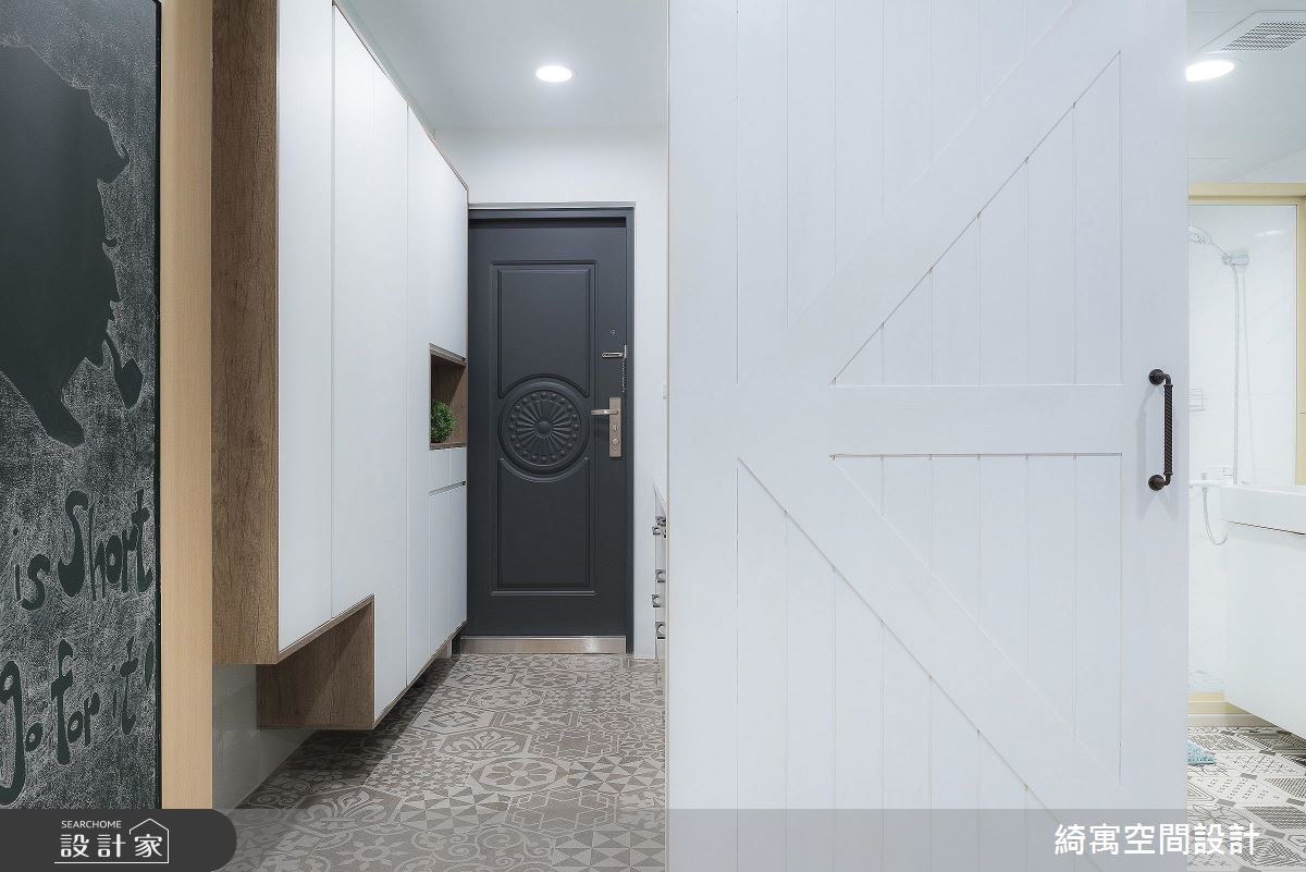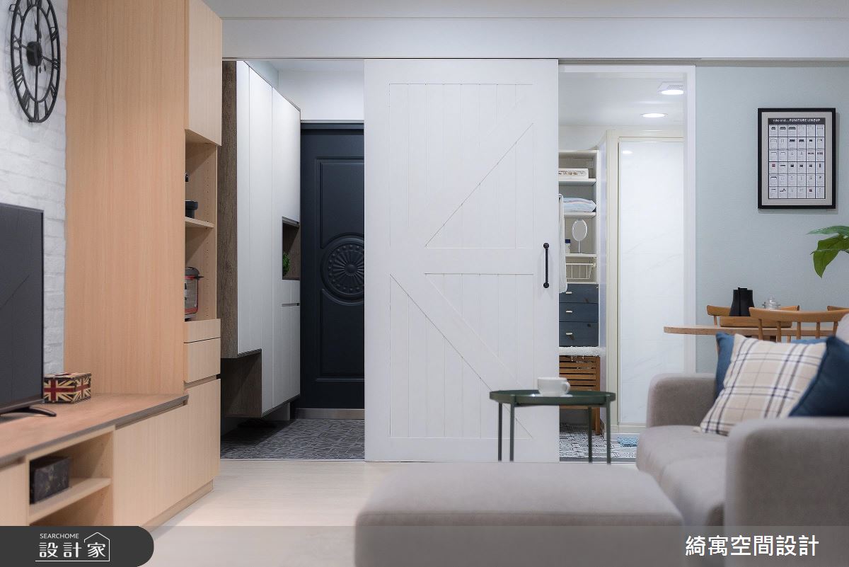 針對風格營造,由於屋主喜愛北歐風與美式風,設計師綜合這兩者特色,調製比例合宜的混搭風格。完美結合穀倉門、花磚、黑板牆與文化石元素,加上一面藍綠色主牆和繽紛壁紙,創造了清新端景。