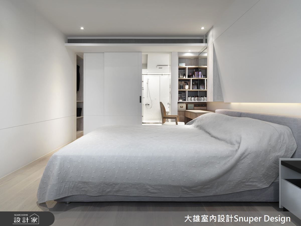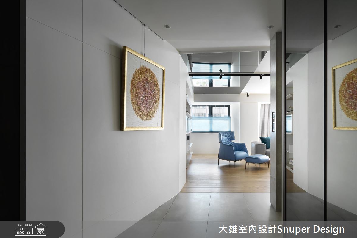 簡約、靜白的現代空間裡,利用鏡面的翻折概念突破領域侷限,更營造出寬敞、舒心的器度,而透過木紋妝點則讓家多了份溫潤表情。