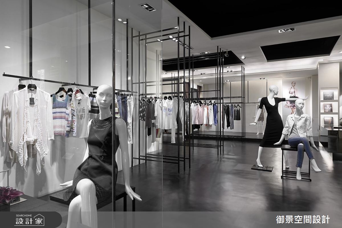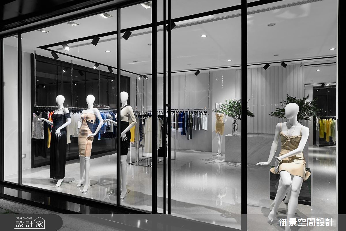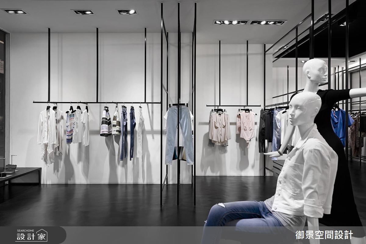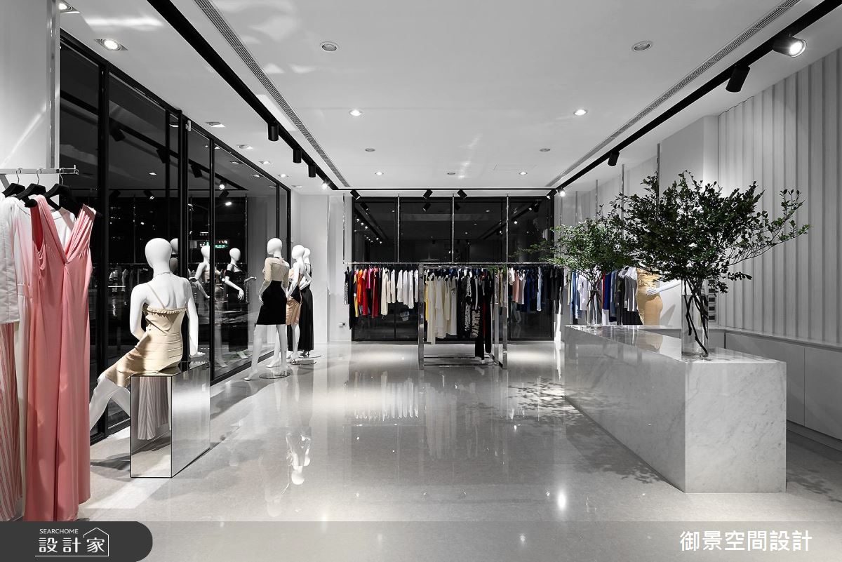 御景設計團隊看見了 60 坪老屋的樓高優勢,為業主打造了寬敞時尚、宛如時裝伸展台的服飾店面,以俐落的動線達到最好的商品陳列效果。