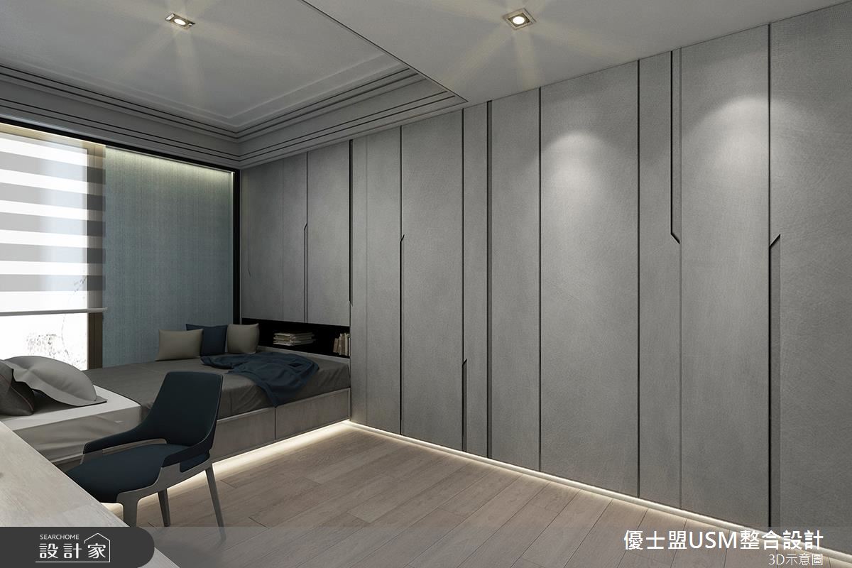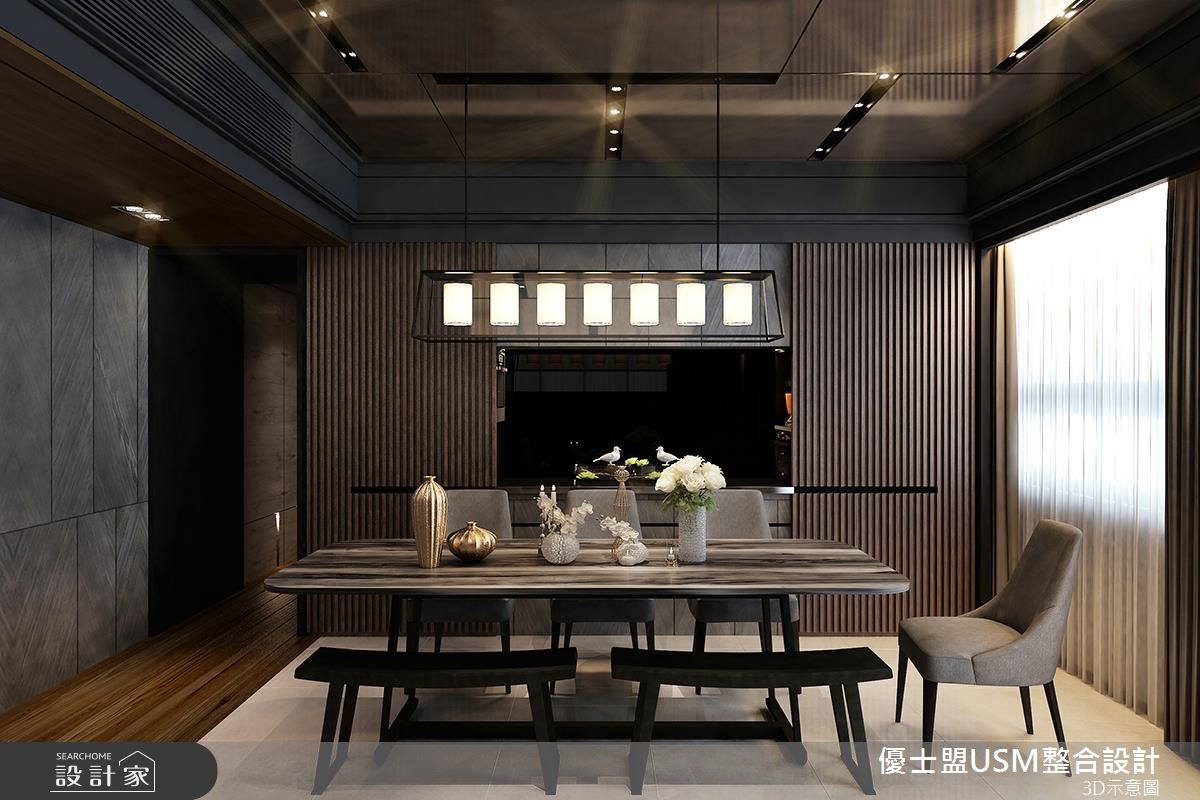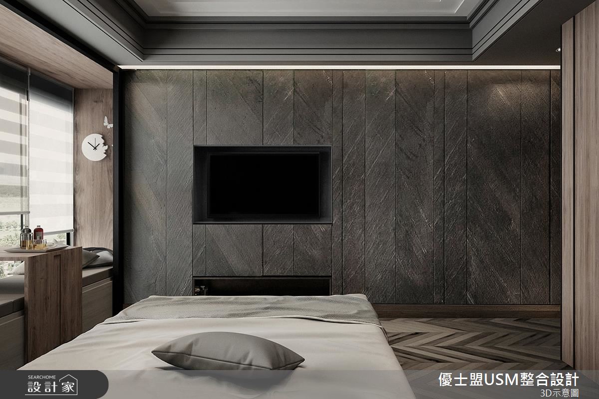 公共區域採以開放式手法設計,將場域緊密銜接,透過電視牆體的開放坐落,將客餐廳回字串聯,呈現不受隔間拘束的互動視野,並使陽光得以貫穿屋內,構築明朗大器的公領域格局,且藉由黑、灰色等堆疊視覺層次,彰顯沉穩的深色質感,同時保留建材的溫潤手感,引用木質平衡空間調性,搭配著跳色單椅與抱枕勾勒視覺亮點,挹注年輕的氣息;主臥內,則運用柔和的灰階闡述溫馨感,細節處更揉合細緻的邊框修飾,在精緻風格與實用機能之間,展現舒適的臥眠情境!