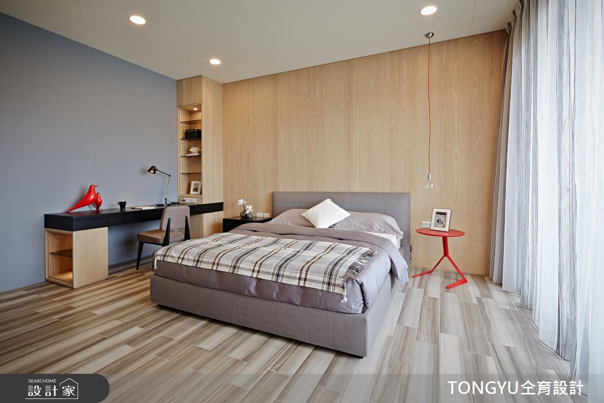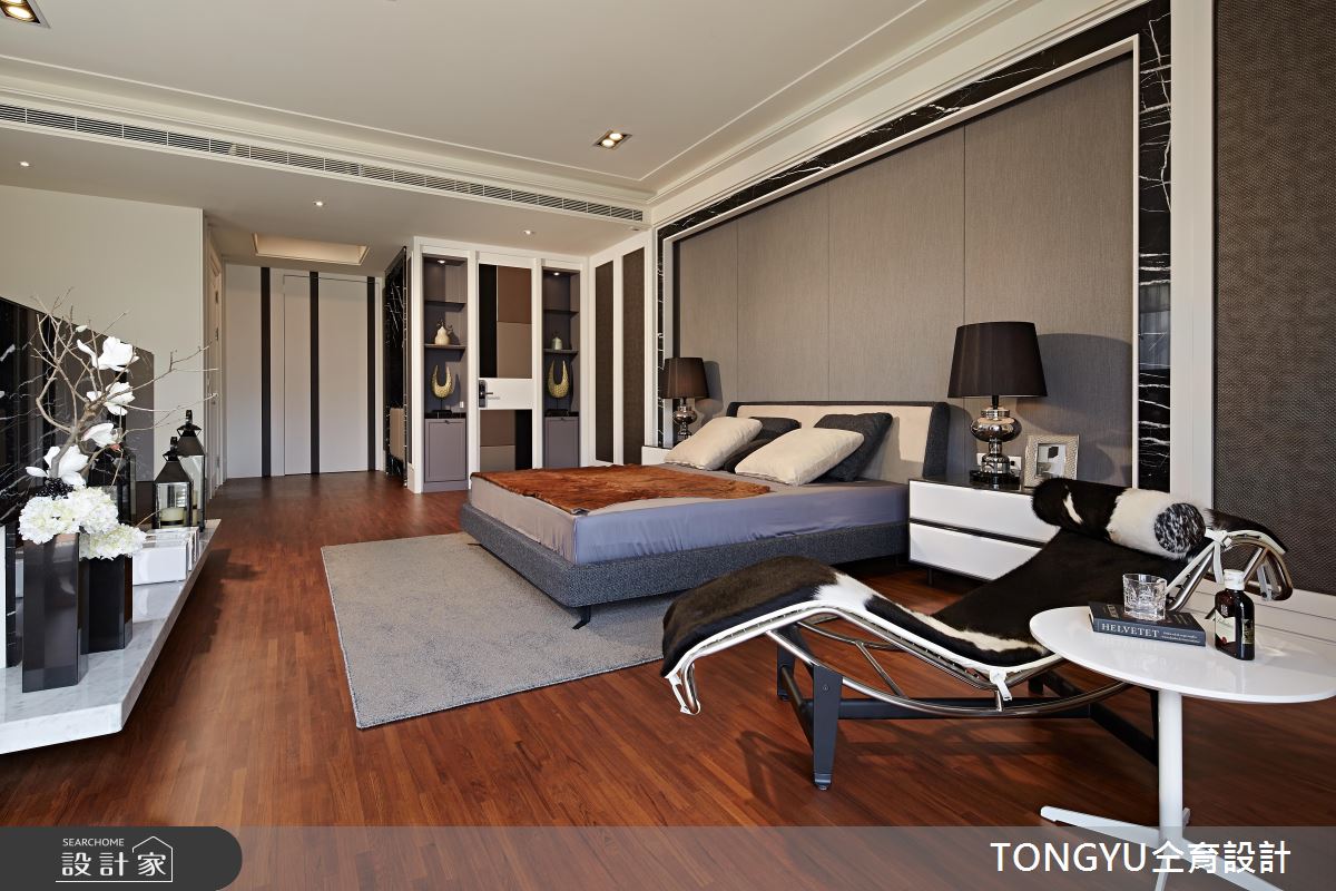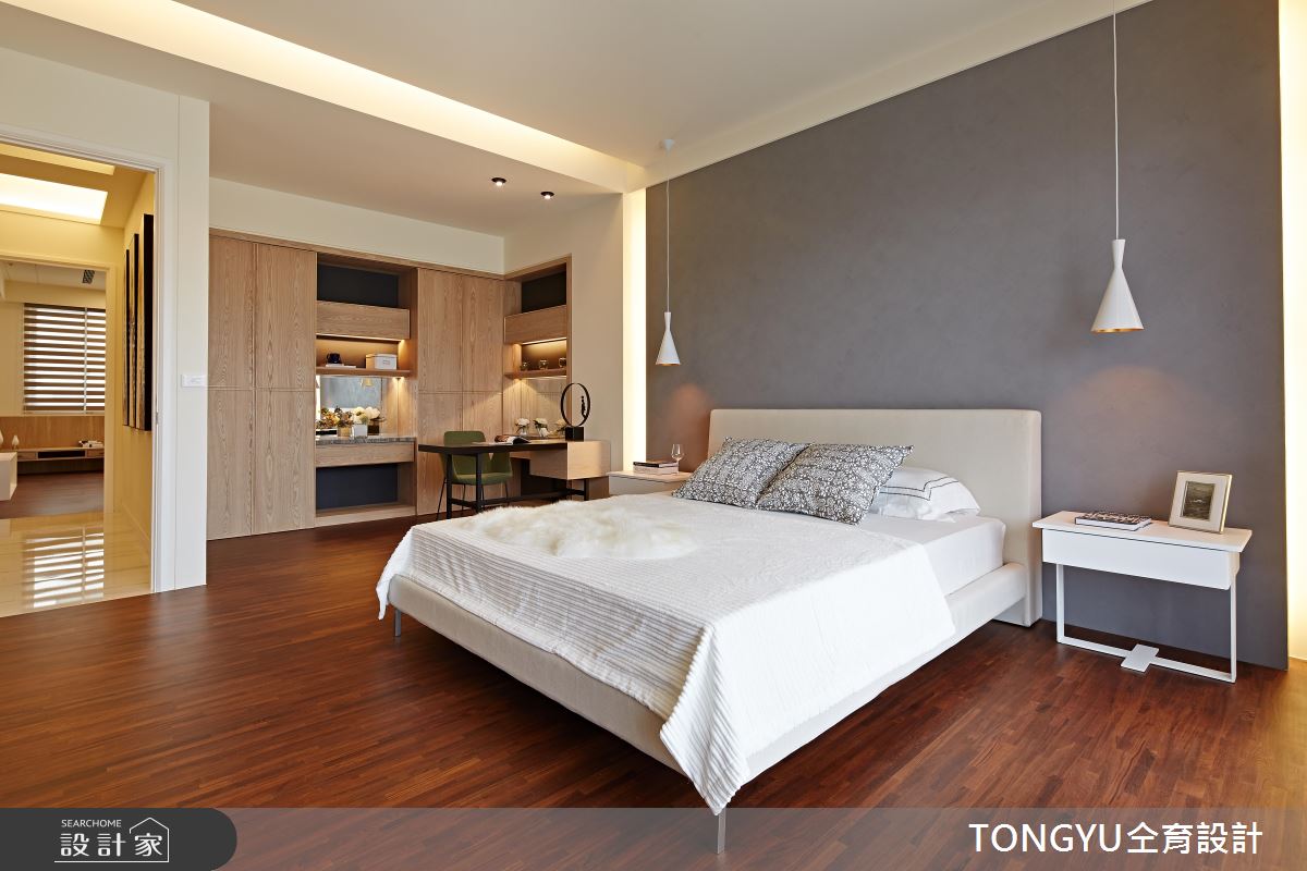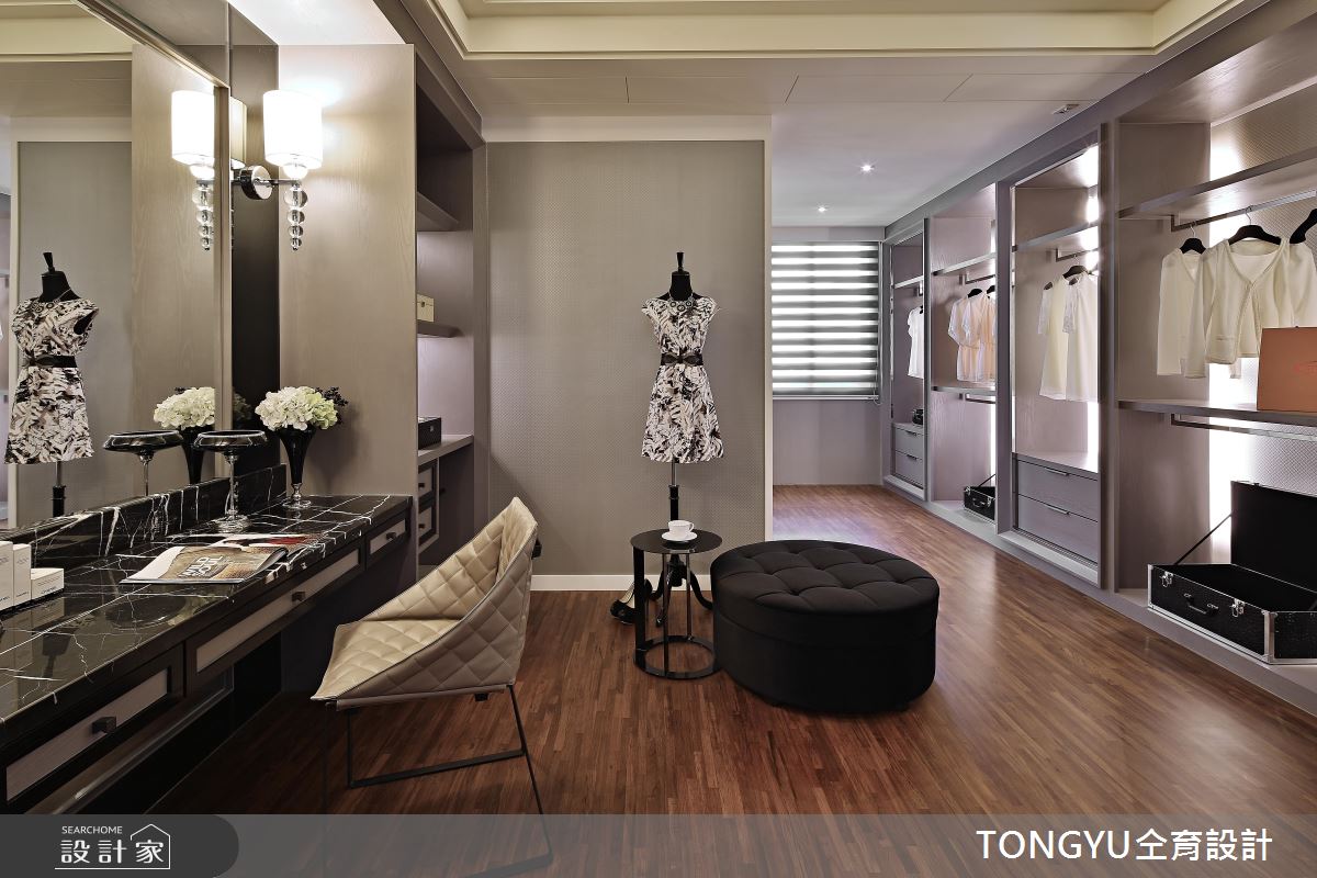 私領域持續以簡約的設計語彙打造,還創造一處寬敞的夢幻更衣室,開放展示的衣櫃收納,展現獨特的時尚品味。
